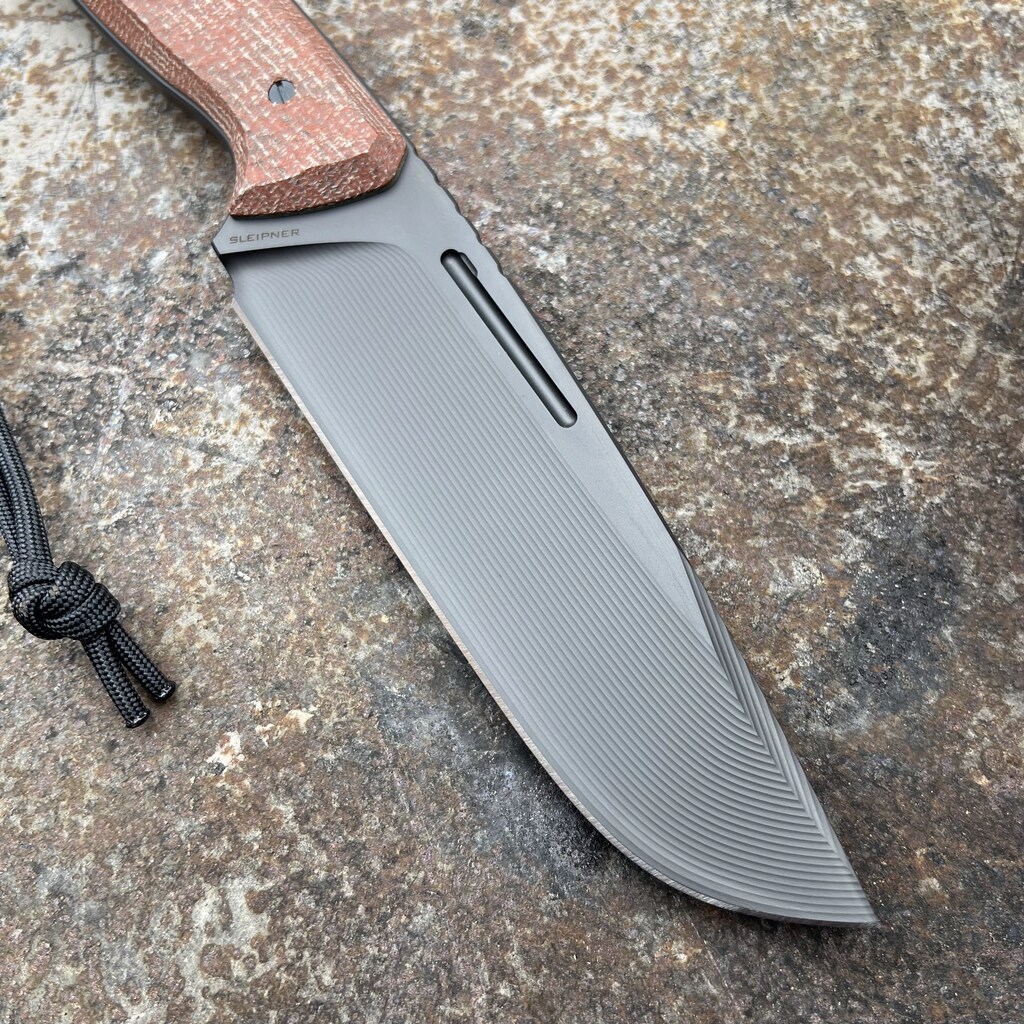 - Stal: Sleipner (~61 HRC), czarna powłoka DLC (~90 HRC)