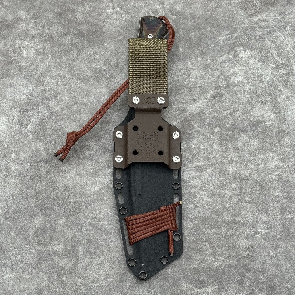 Nóż MK Knives & Tools Rambler „Fear The Bear” Bead Blasted Elmax Deep Autumn Canvas Micarta/Black G10 Black Kydex