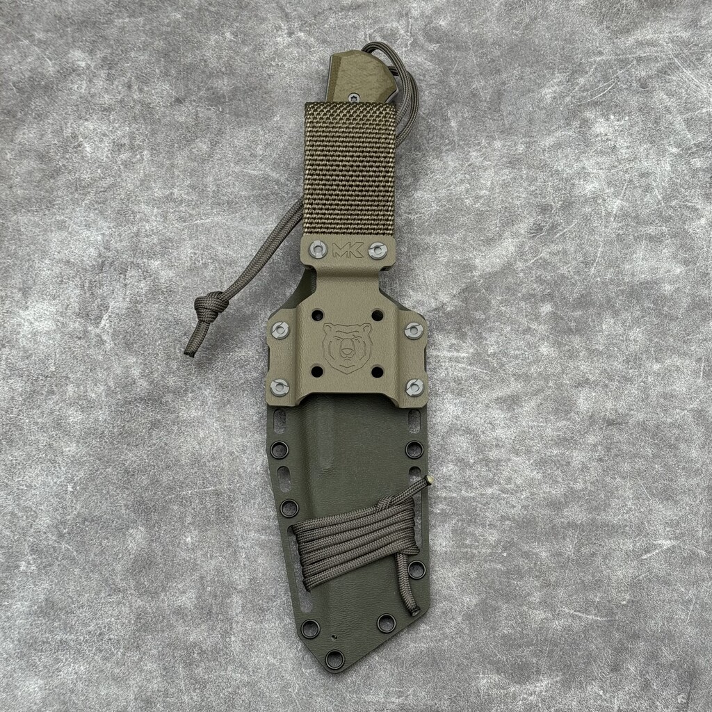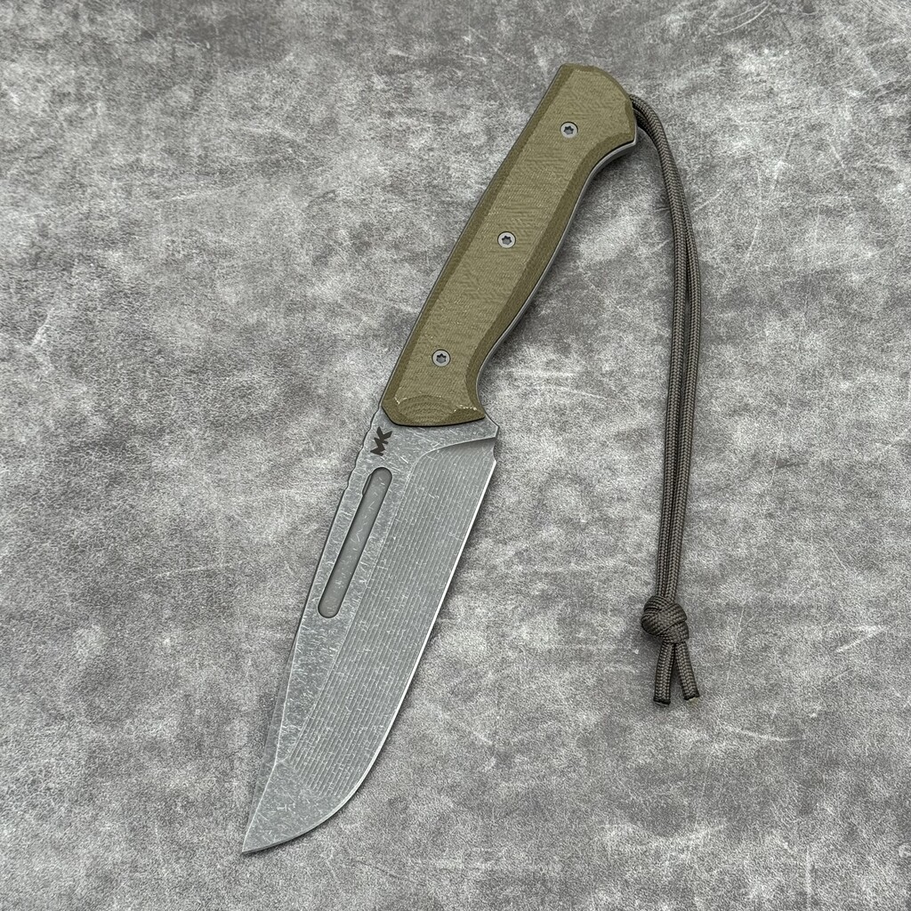 Nóż MK Knives & Tools Rambler „Fear The Bear” Stonewash Elmax Olive Canvas Micarta/Black G10 OD Green Kydex
