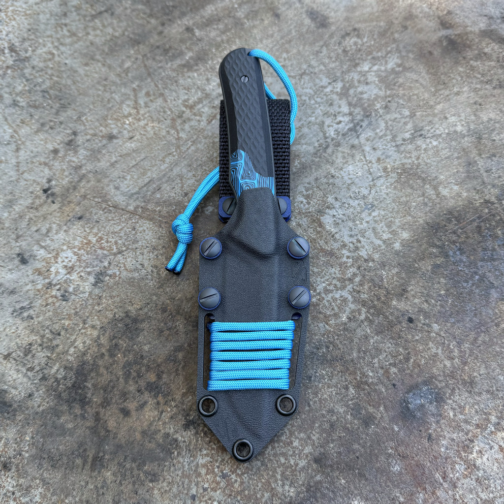 - Rękojeść: czarne G10 + wstawki z niebiesko-czarnego G10 (Blue Turtle G10)