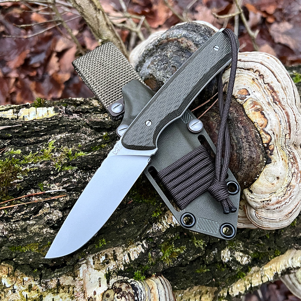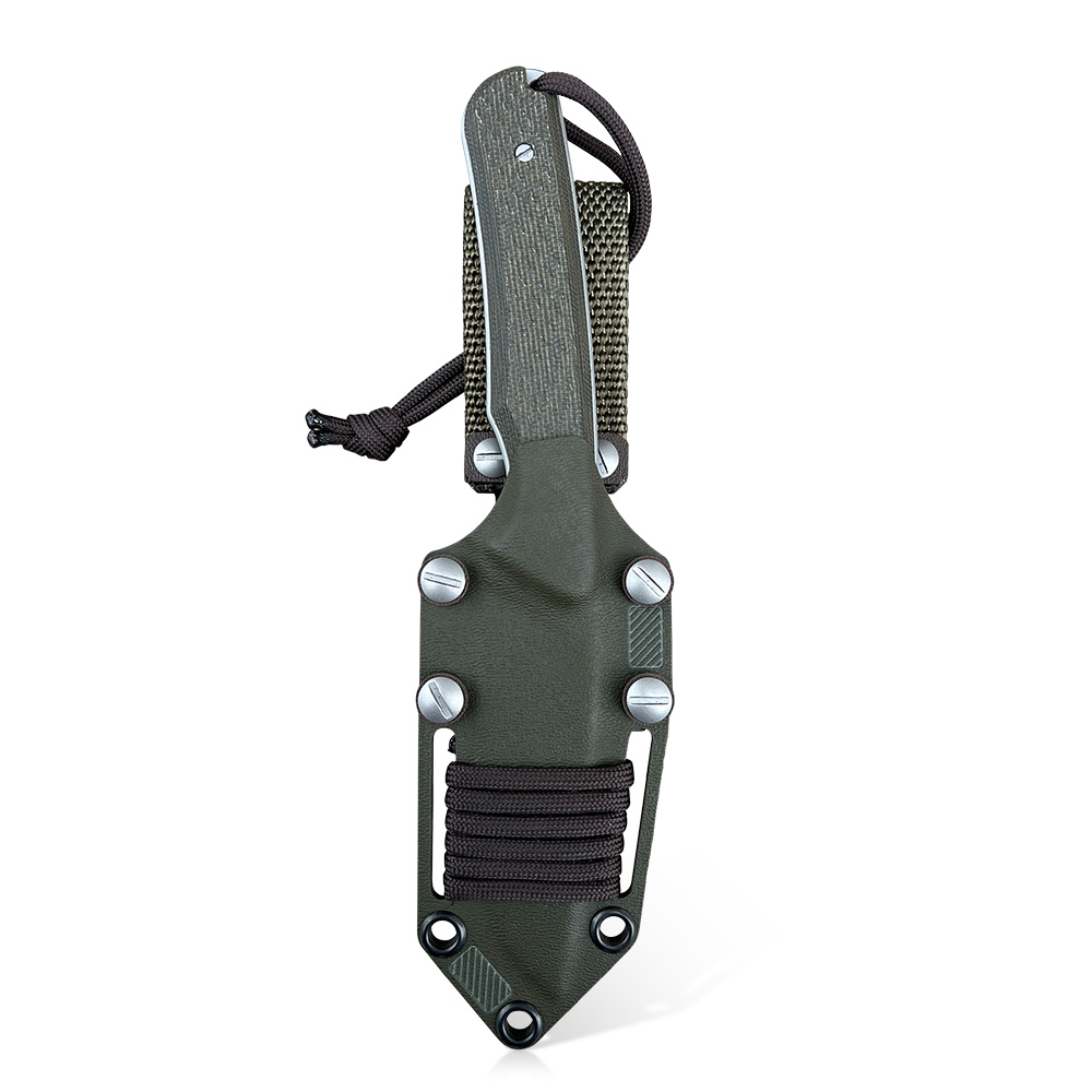- Rękojeść: zielona micarta (Green Canvas Micarta) + brązowy kompozyt G10