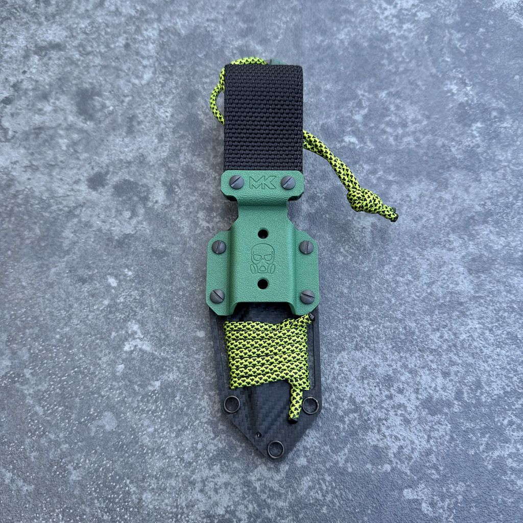 Nóż MK Knives & Tools Scout „Postapo” Black DLC Vanadis 4 Extra Green/Toxic Green G10 Carbon Holstex