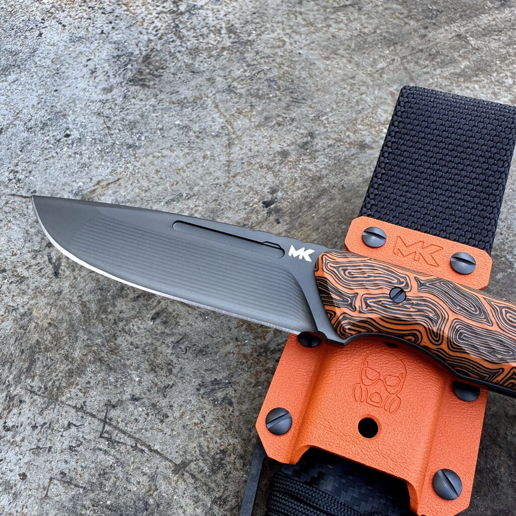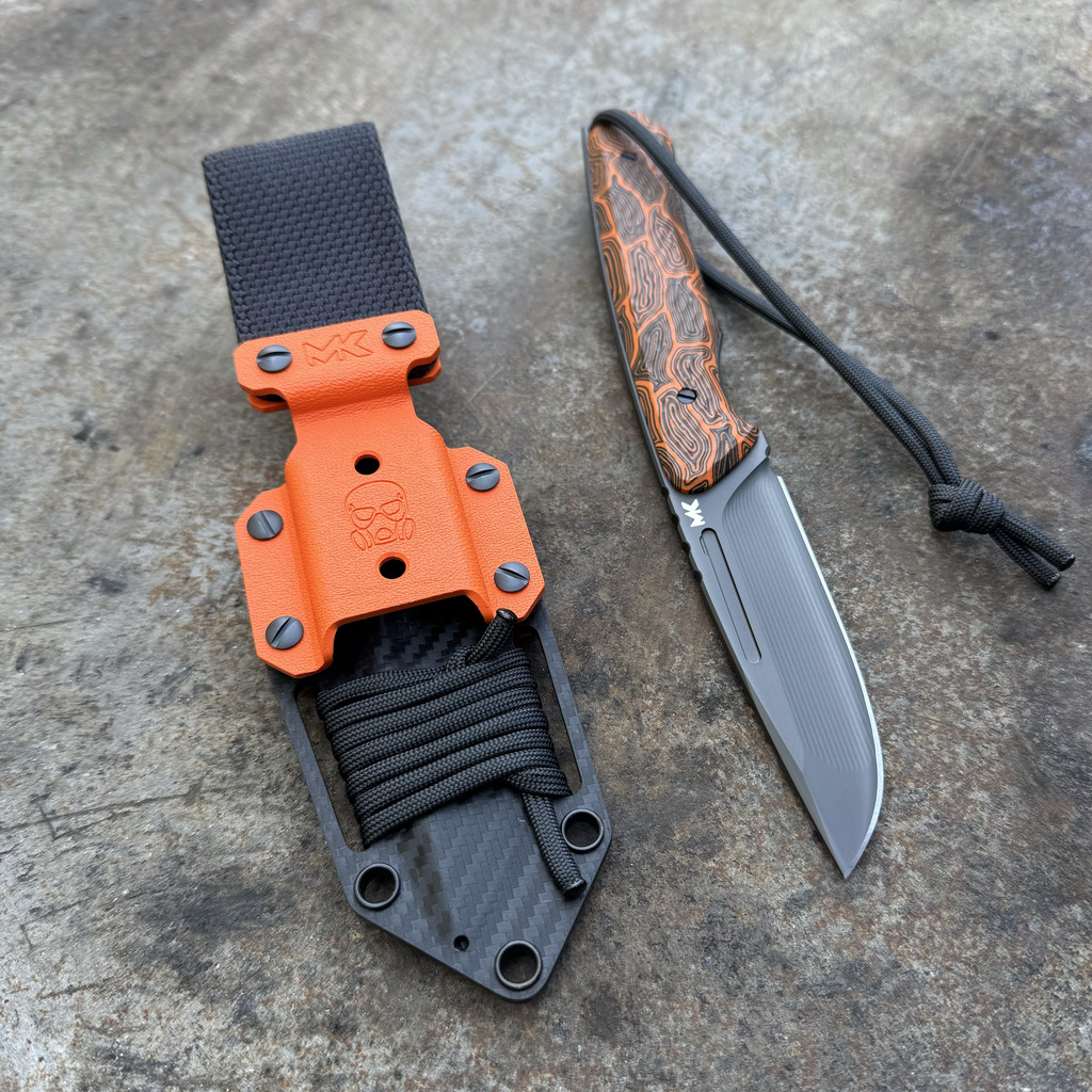 Nóż MK Knives & Tools Scout „Postapo” Black DLC Vanadis 4 Extra Orange Turtle G10 Carbon Holstex