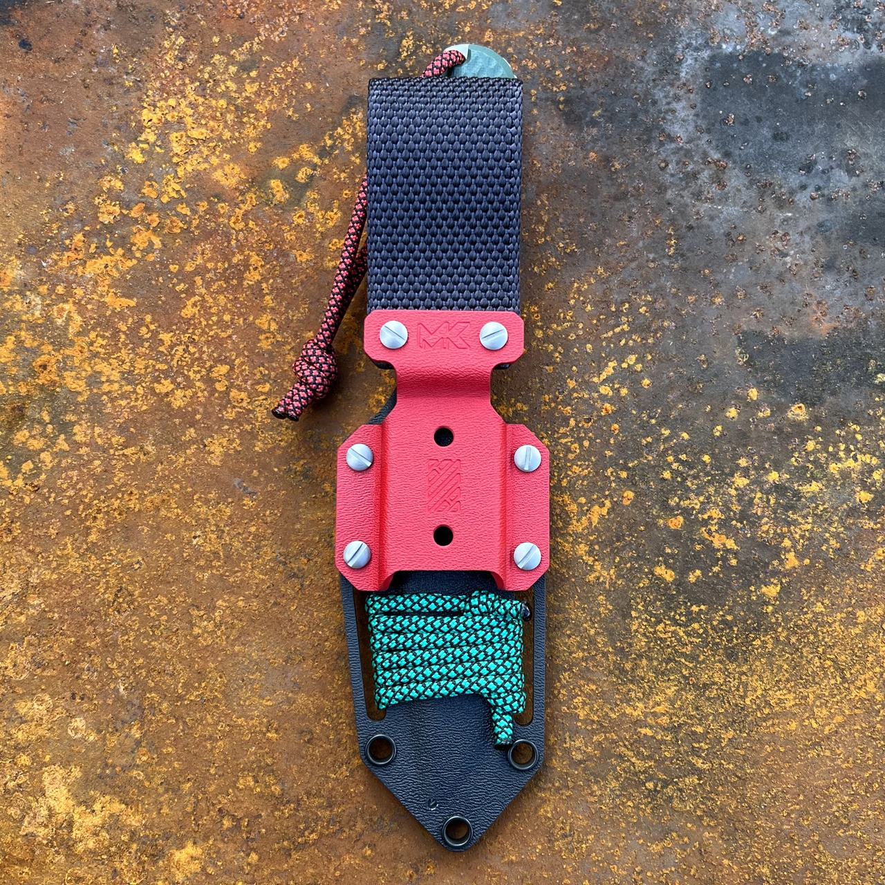 * Zaprojektowana przez knifemakera klamra jest kompatybilna z rozwiązaniami typu MOLLE. Klamrę montujemy demontując uprzednio moduł z nylonową przelotką.