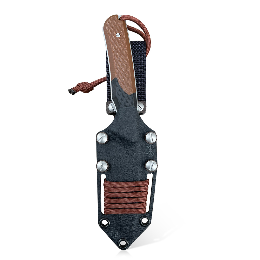 Na zakończeniu rękojeści noża znajdziemy otwór na zamocowanie dodatkowej linki, która może służyć jako zabezpieczenie przed upuszczeniem noża podczas pracy, lub dodatkowy chwytak ułatwiający wyjmowanie noża z kabury. Oryginalnie załączono w nim odcinek paracordu o dobranym do designu odcieniu.