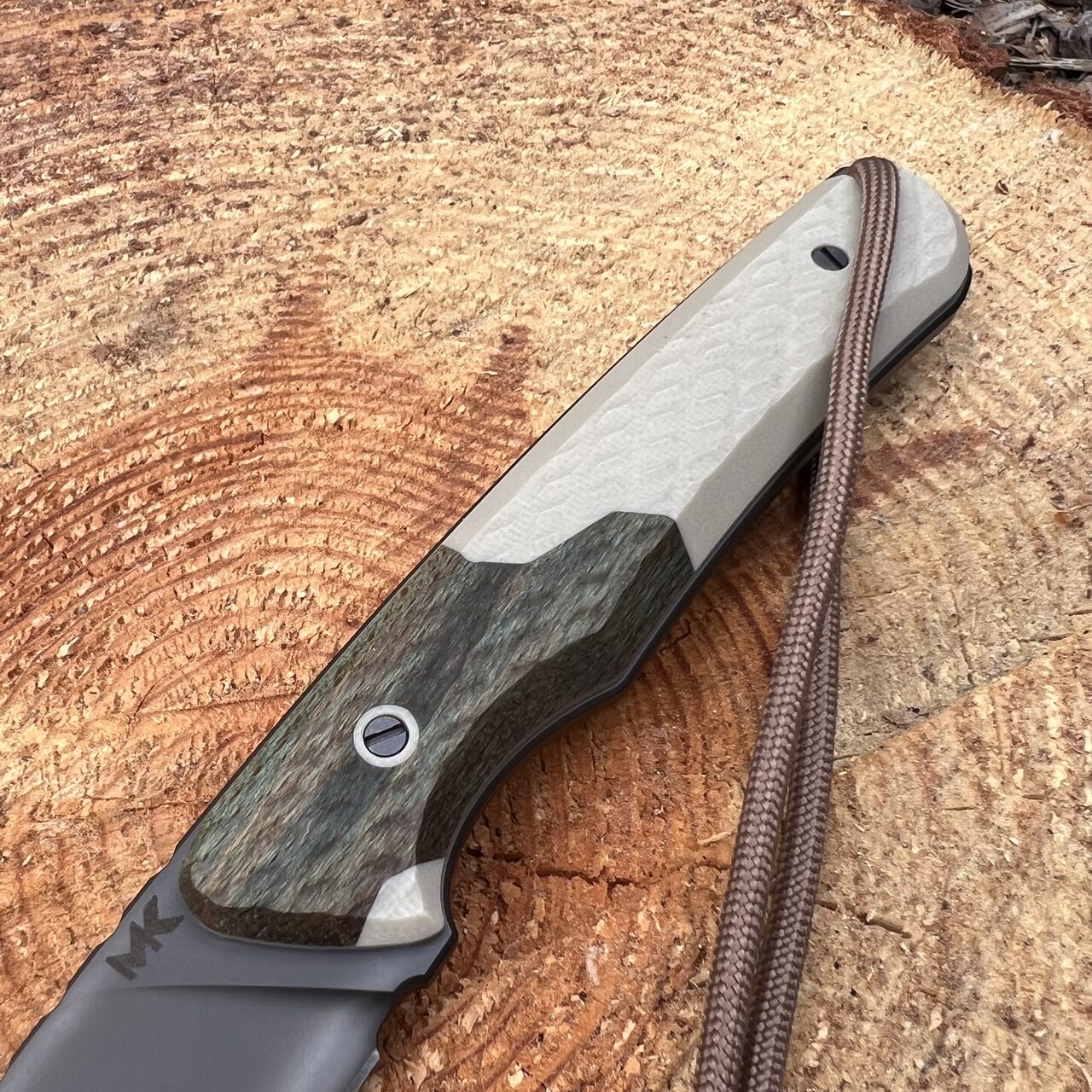 Na zakończeniu rękojeści noża znajdziemy otwór na zamocowanie dodatkowej linki, która może służyć jako zabezpieczenie przed upuszczeniem noża podczas pracy, lub dodatkowy chwytak ułatwiający wyjmowanie noża z kabury. Oryginalnie załączono w nim odcinek paracordu o dobranym do designu odcieniu.