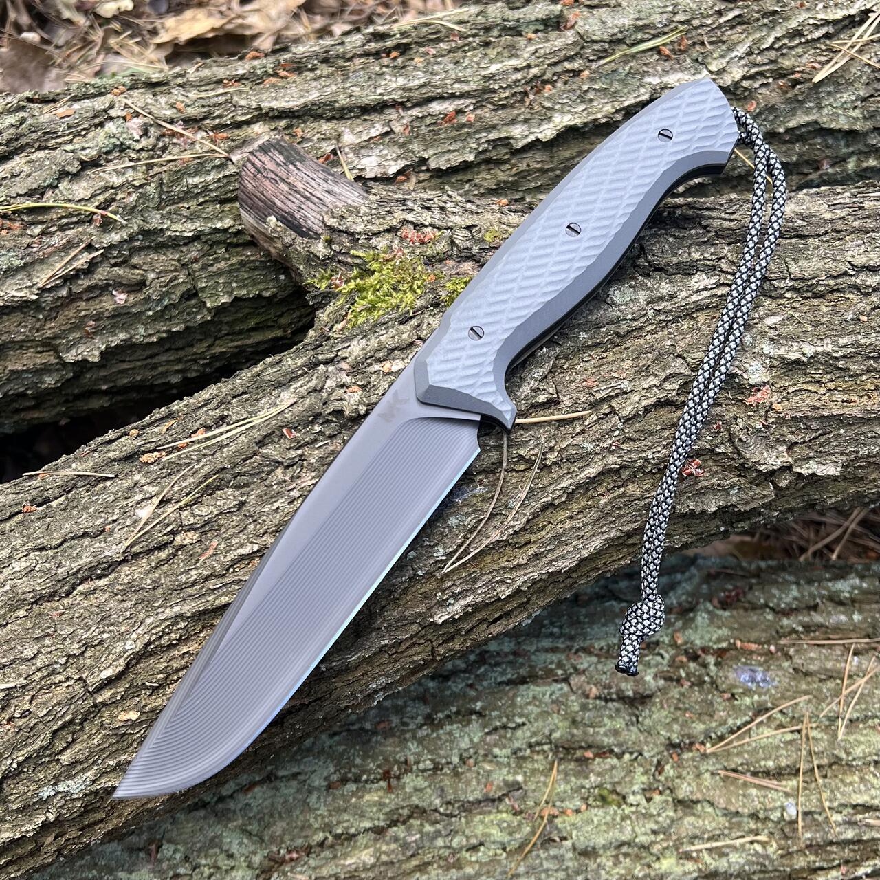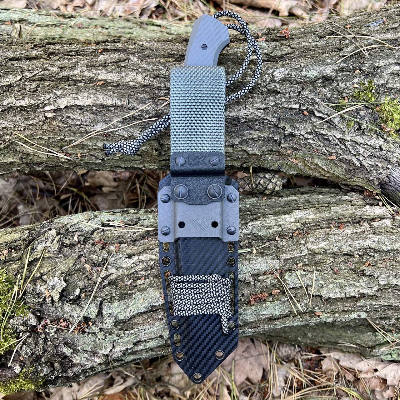 Nóż MK Knives & Tools “Grey” posiada ostrze z doskonałej stali Elmax z innowacyjnym wklęsłym szlifem widocznym jako subtelne rowki na ostrzu. Głownię pokryto czarną powłoką DLC. Okładki rękojeści wykonane z kompozytu G10 (połączenie kolorów szarego i czarnego) kryją na jej zakończeniu pin na paracord czy linkę itd. W komplecie z nożem otrzymujemy czarną kaburę z carbonowego Holstexu.