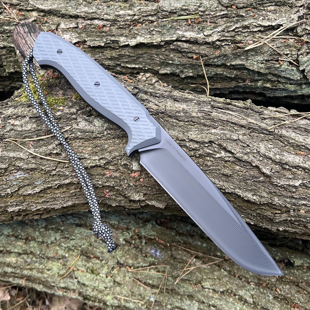 Na zakończeniu rękojeści noża znajdziemy pin na zamocowanie dodatkowej linki, która może służyć jako zabezpieczenie przed upuszczeniem noża podczas pracy, lub dodatkowy chwytak ułatwiający wyjmowanie noża z kabury. Rozwiązanie to pozwala również zabezpieczyć nóż przed zgubieniem. Oryginalnie do noża załączono odcinek paracordu o dobranym do designu odcieniu.