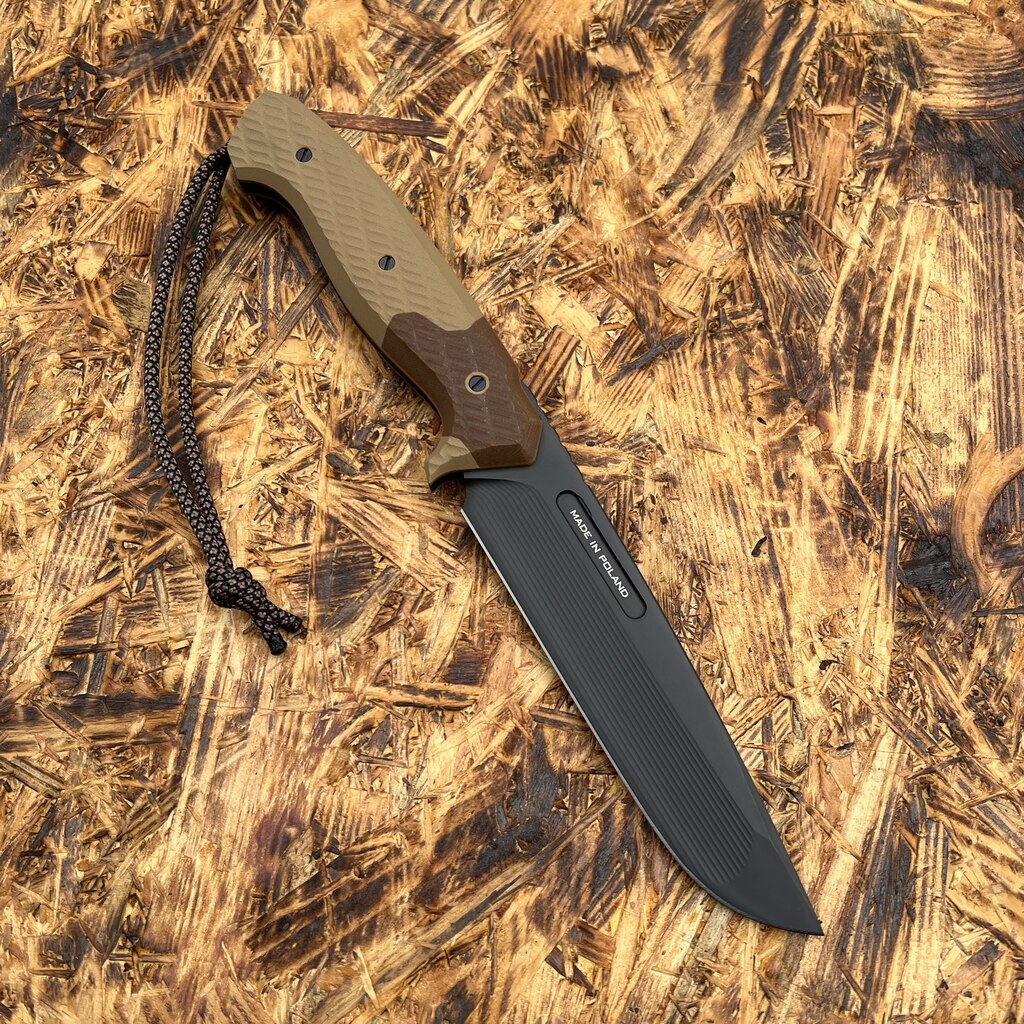 - Rękojeść: kompozyt G10 – połączenie: jasny brąz (coyote)/ciemny brąz