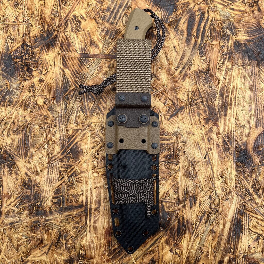 Kaburę możemy przenosić na kilka sposobów. Do pasa mocujemy ją za pomocą zrobionej z wytrzymałego nylonu o dużej gramaturze parcianej przelotki. Kabura zaopatrzona została w otwory przelotowe, które można wykorzystać opcjonalnie do przytwierdzenia zestawu do plecaka czy elementu uprzęży taktycznej linką, sznurkiem czy paracordem. Można do tego oczywiście użyć zapasu paracordu, którym opleciona jest kabura (jego barwa odpowiada odcinkowi znajdującemu się przy nożu).