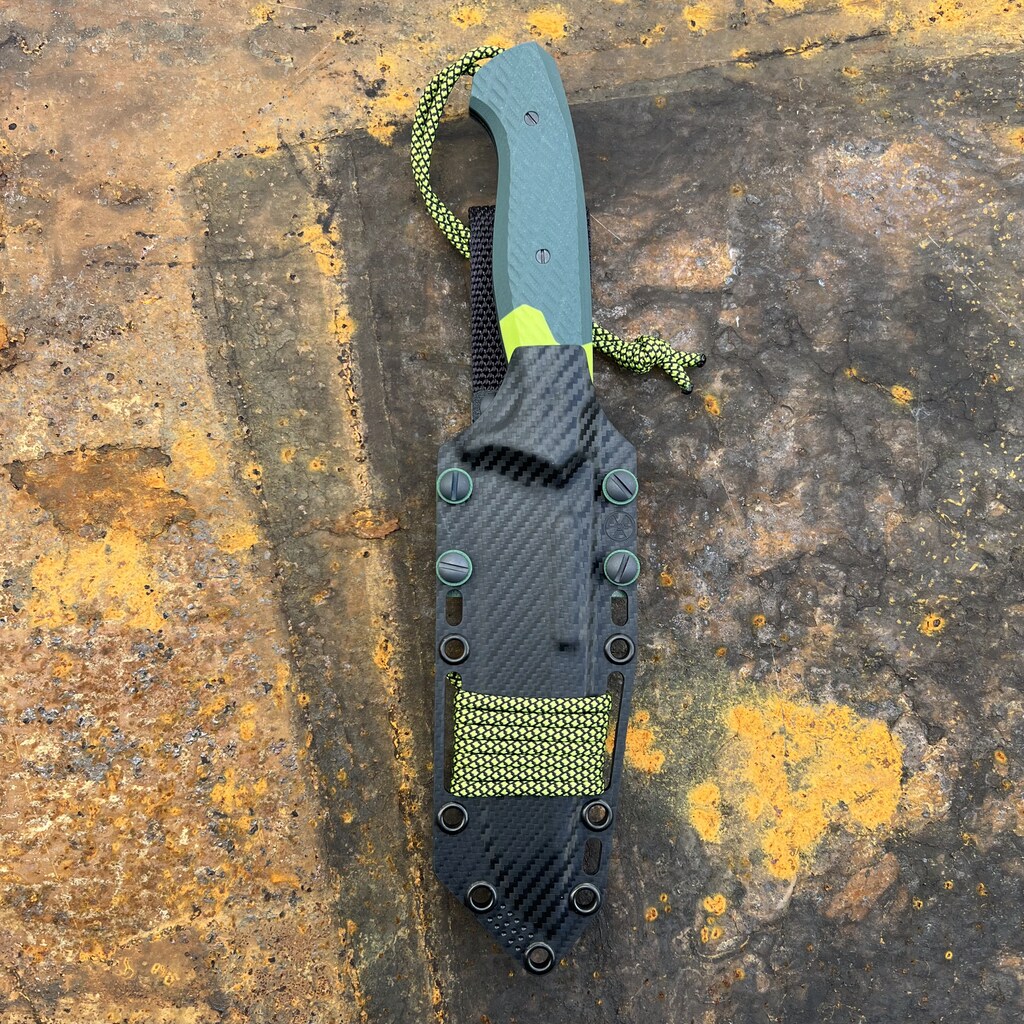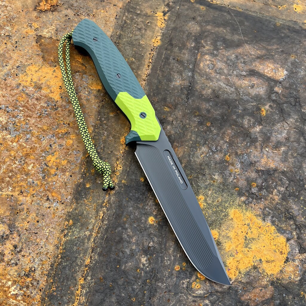 - Rękojeść: kompozyt G10 – połączenie: ciemny zielony/jasny zielony (Toxic Green)