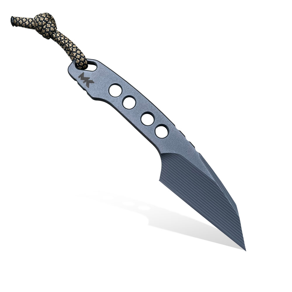 Niewielkie rozmiary, ale duże możliwości! Skuteczne ostrze typu wharncliffe ze świetnej stali Vanadis 4 Extra, w czarnej powłoce tytanowej (PVD). Do tego kabura z kydexu posiadająca możliwość przenoszenia przy pasku w pionie lub w poziomie, oraz z opcję przenoszenia na szyi, najlepiej po dodatkowym zabezpieczeniu przed zgubieniem np. paracordem (nóż typu neck). Zgrabna całość zamknięta w pięknym projekcie, wykonana w niezwykłym, drobiazgowym stylu MK Knives & Tools.