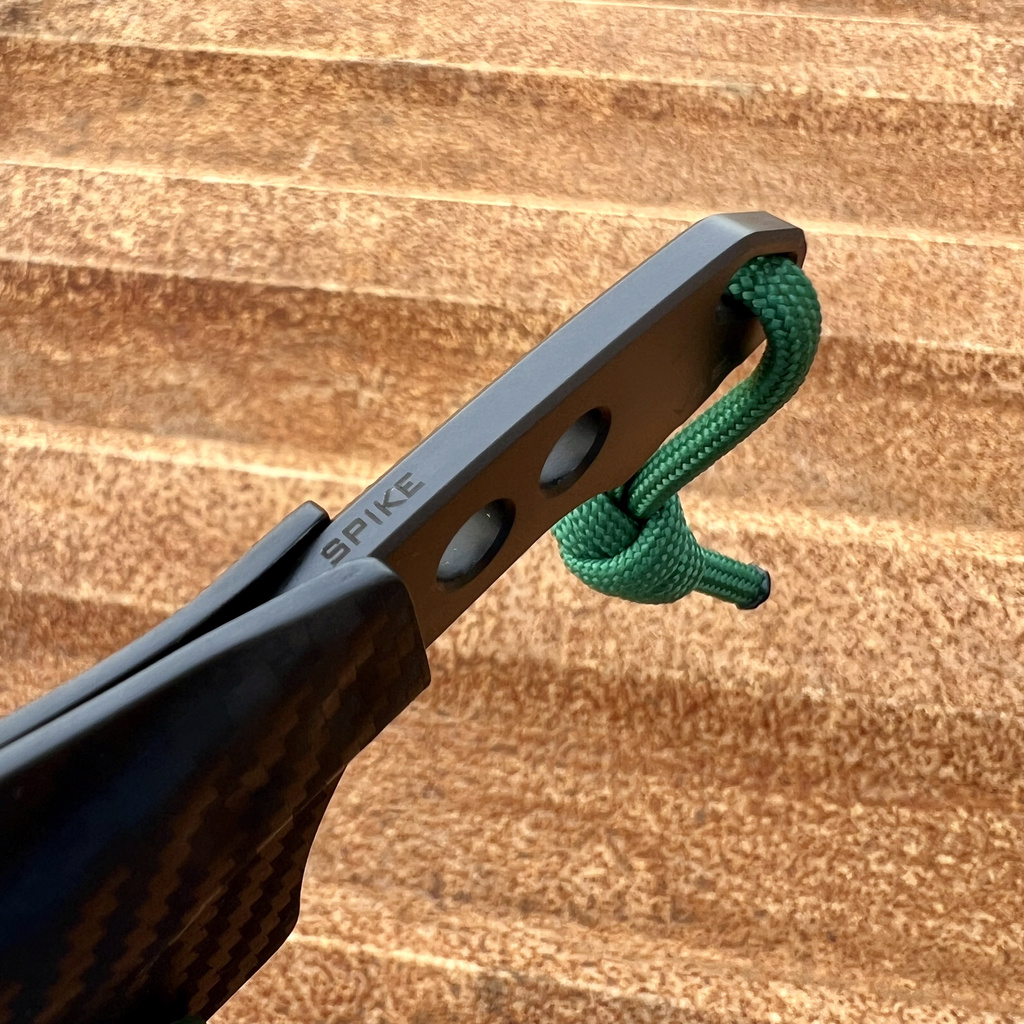Spike to nóż lekkiej konstrukcji idealny również do przenoszenia na szyi (jako nóż typu neck). Do mocowania na szyi możemy użyć dowolnego rozwiązania, takiego jak paracord, sznurek, łańcuszek itd., które przyczepiamy do dostosowanej do tego kabury. Należy pamiętać o zastosowaniu rozwiązania, które zabezpieczy przed wypadnięciem noża z kabury i przed jego zgubieniem, szczególnie jeżeli nóż montujemy rękojeścią do dołu.