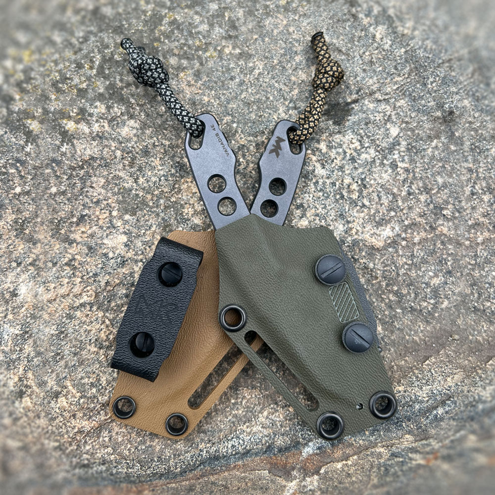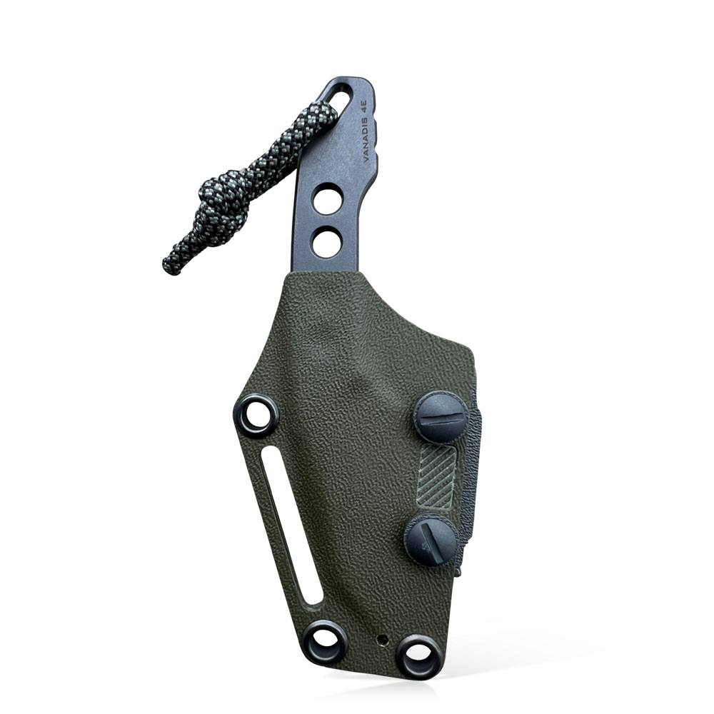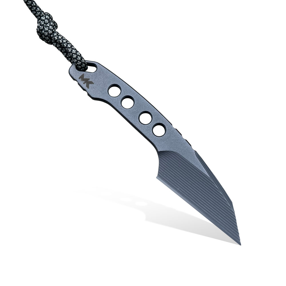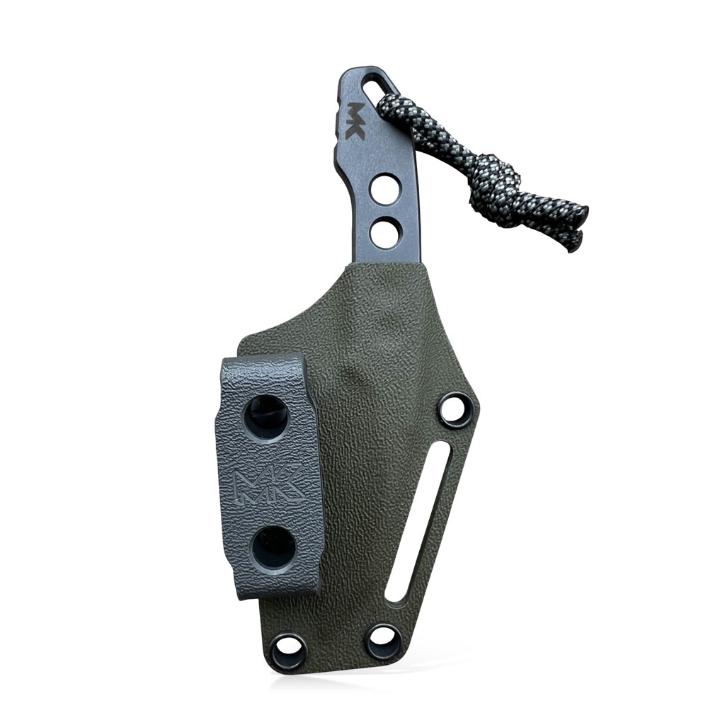 Niewielkie rozmiary, ale duże możliwości! Skuteczne ostrze typu wharncliffe ze świetnej stali Vanadis 4 Extra, w czarnej powłoce tytanowej (PVD). Do tego kabura z kydexu posiadająca możliwość przenoszenia przy pasku w pionie lub w poziomie, oraz z opcję przenoszenia na szyi, najlepiej po dodatkowym zabezpieczeniu przed zgubieniem np. paracordem (nóż typu neck). Zgrabna całość zamknięta w pięknym projekcie, wykonana w niezwykłym, drobiazgowym stylu MK Knives & Tools.