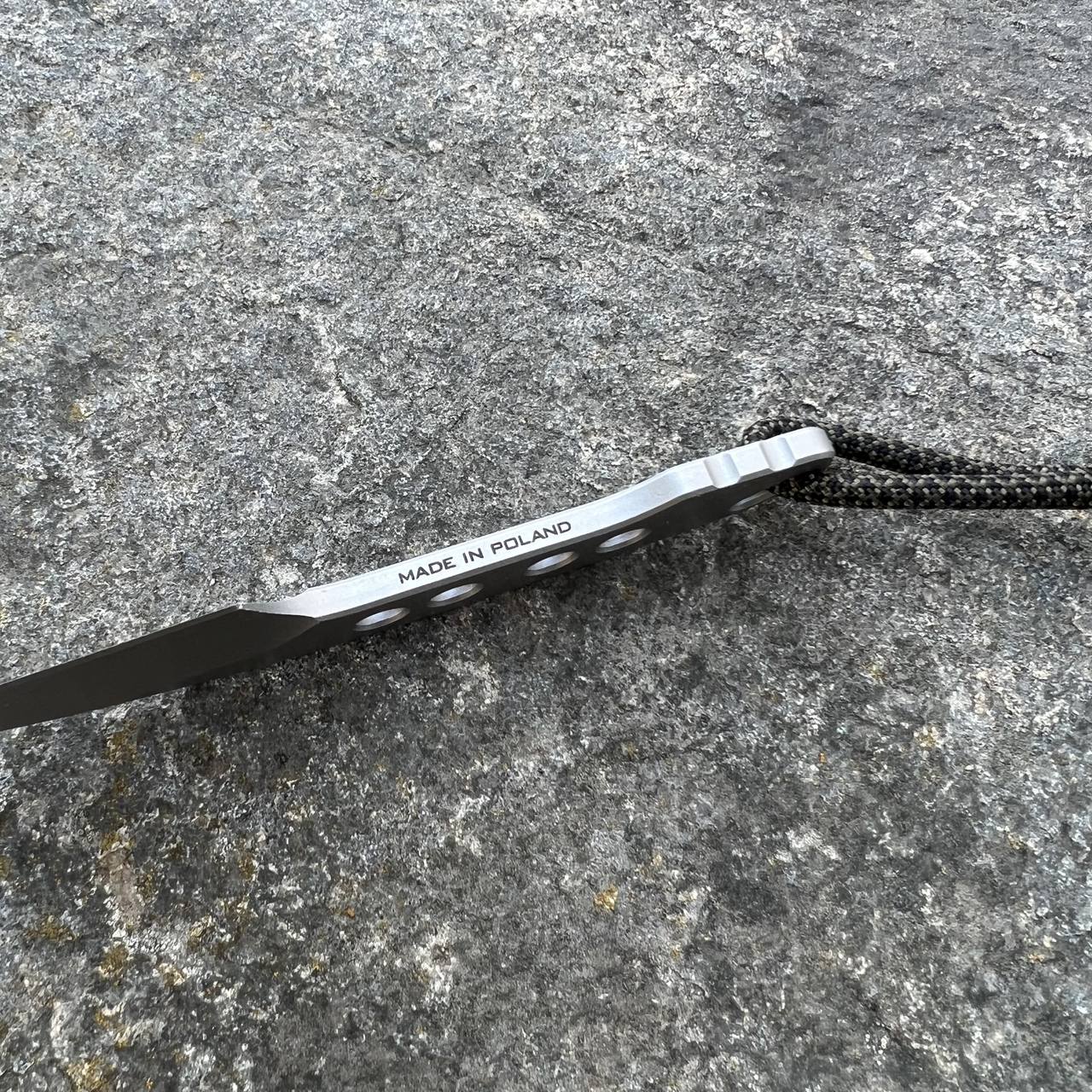 Spike to nóż lekkiej konstrukcji idealny również do przenoszenia na szyi (jako nóż typu neck). Do mocowania na szyi możemy użyć dowolnego rozwiązania, takiego jak paracord, sznurek, łańcuszek itd., które przyczepiamy do dostosowanej do tego kabury. Należy pamiętać o zastosowaniu rozwiązania, które zabezpieczy przed wypadnięciem noża z kabury i przed jego zgubieniem.