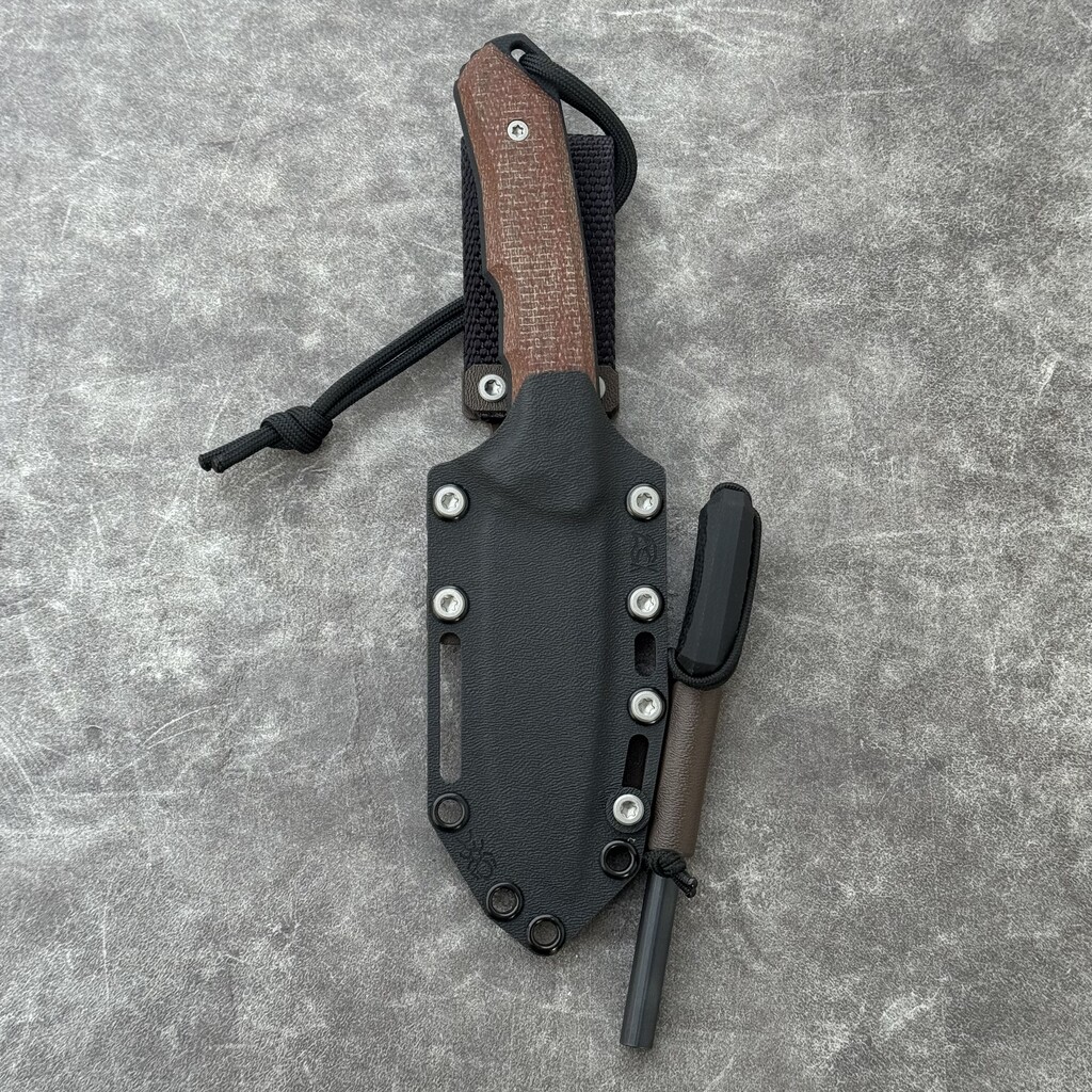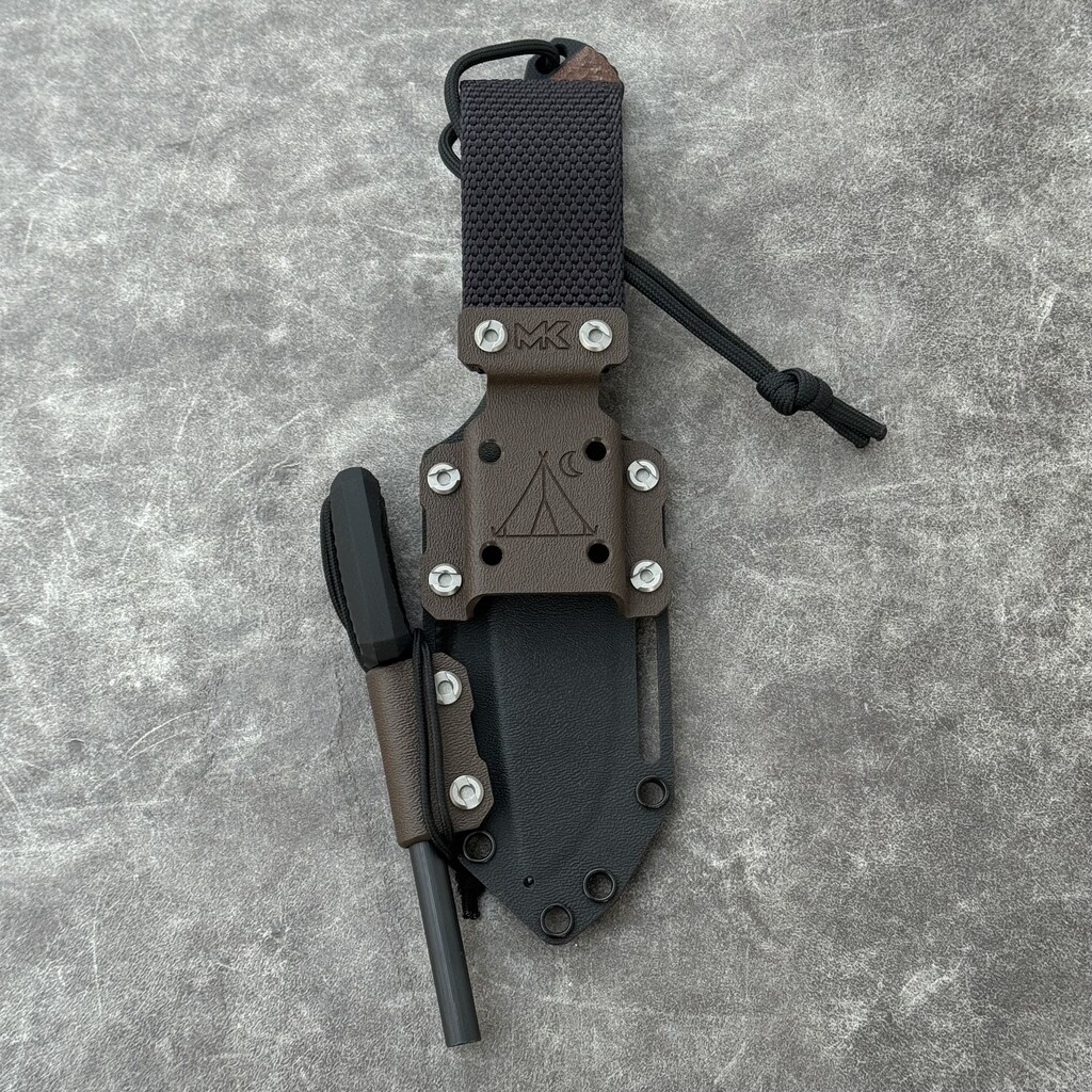 Nóż MK Knives & Tools Venn 'Camp Ant’ with Ferro Rod | Bead Blasted Elmax Brown Micarta Black G10 Liners Black Kydex