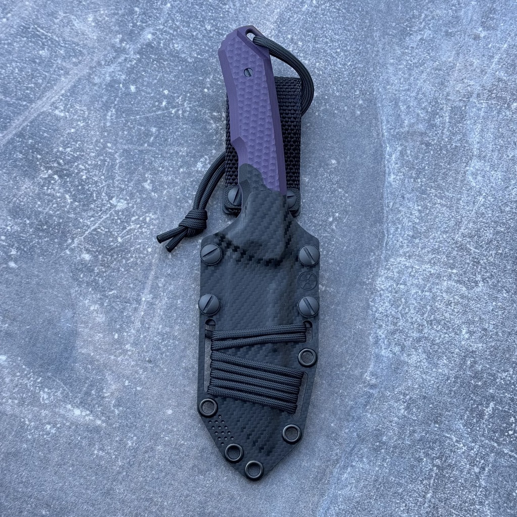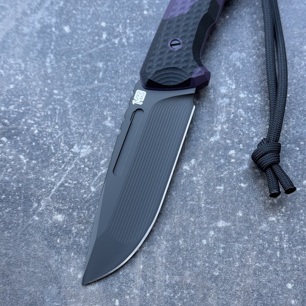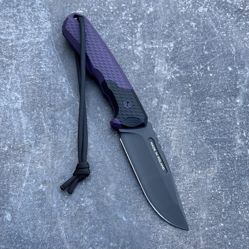 - Rękojeść: Fioletowy laminat G10 (Purple) + czarne wstawki