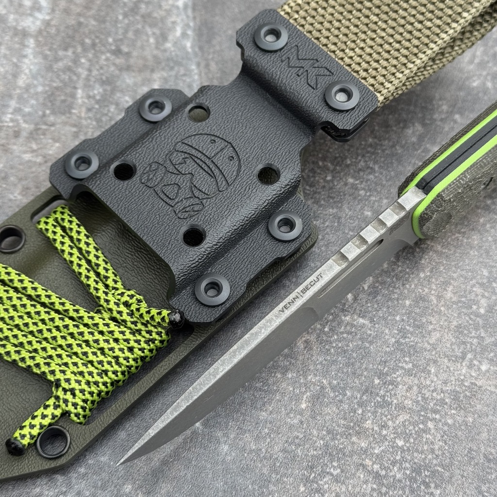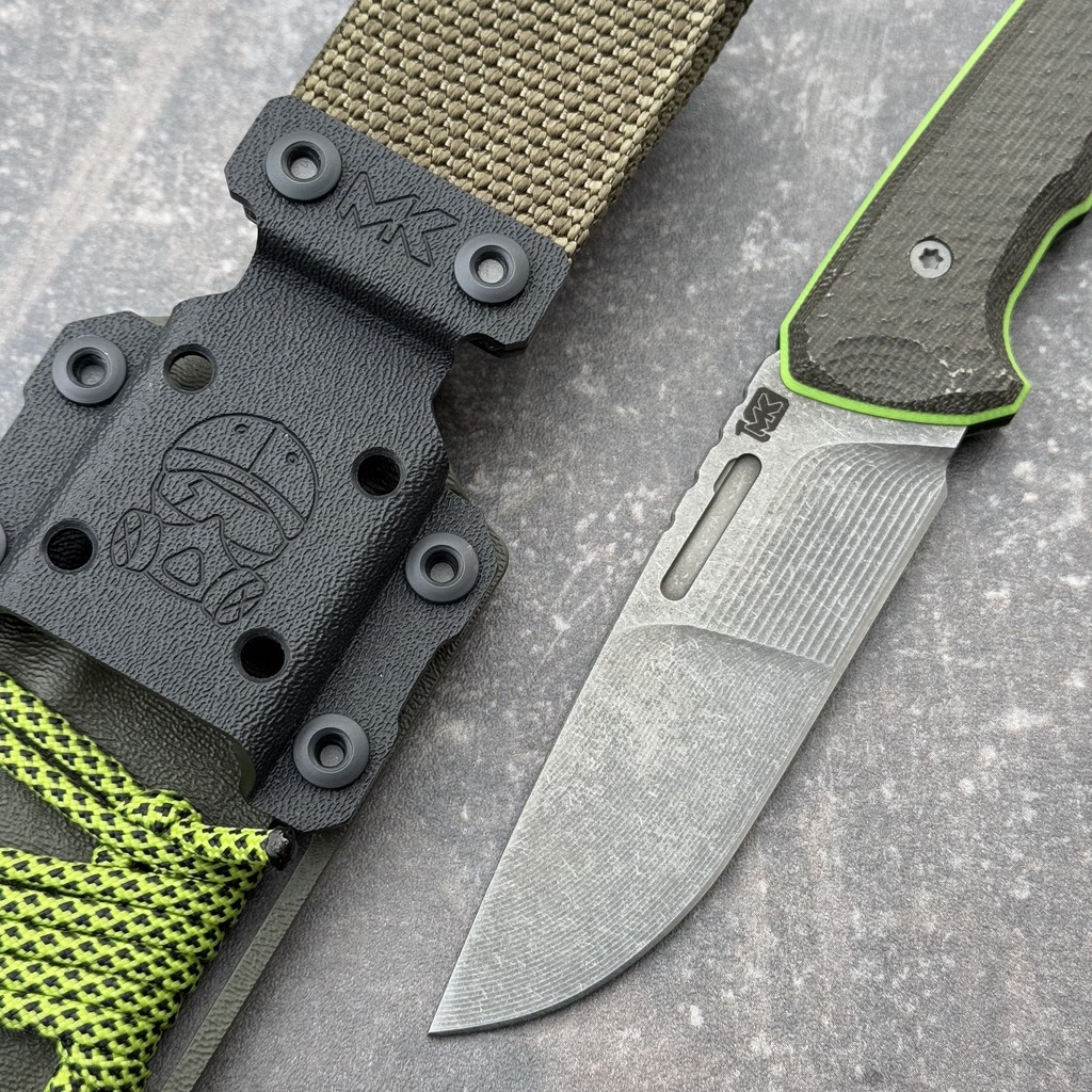 Nóż MK Knives & Tools Venn 'Postapo’ 10th Anniversary Logo Stonewash Green Canvas Micarta/Toxic Green G10 OD Green Kydex