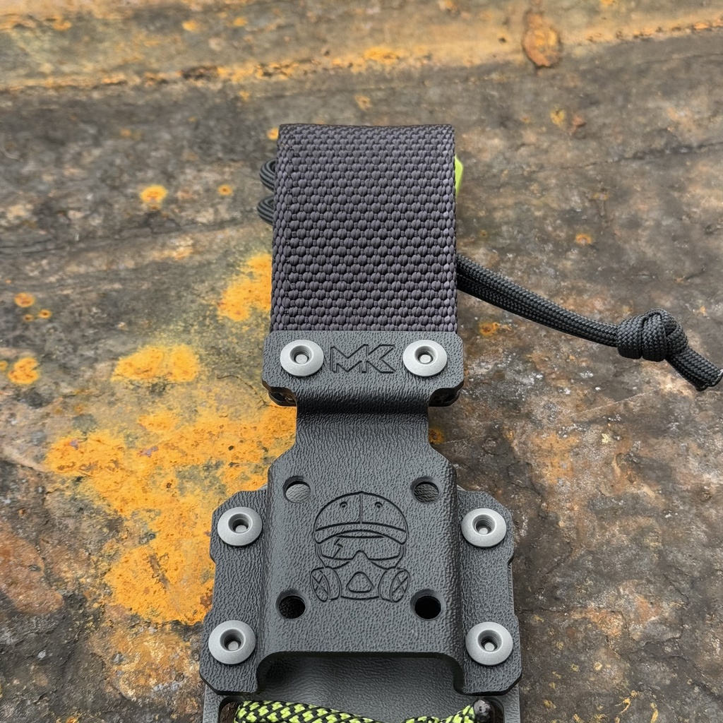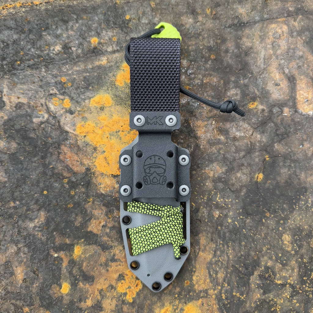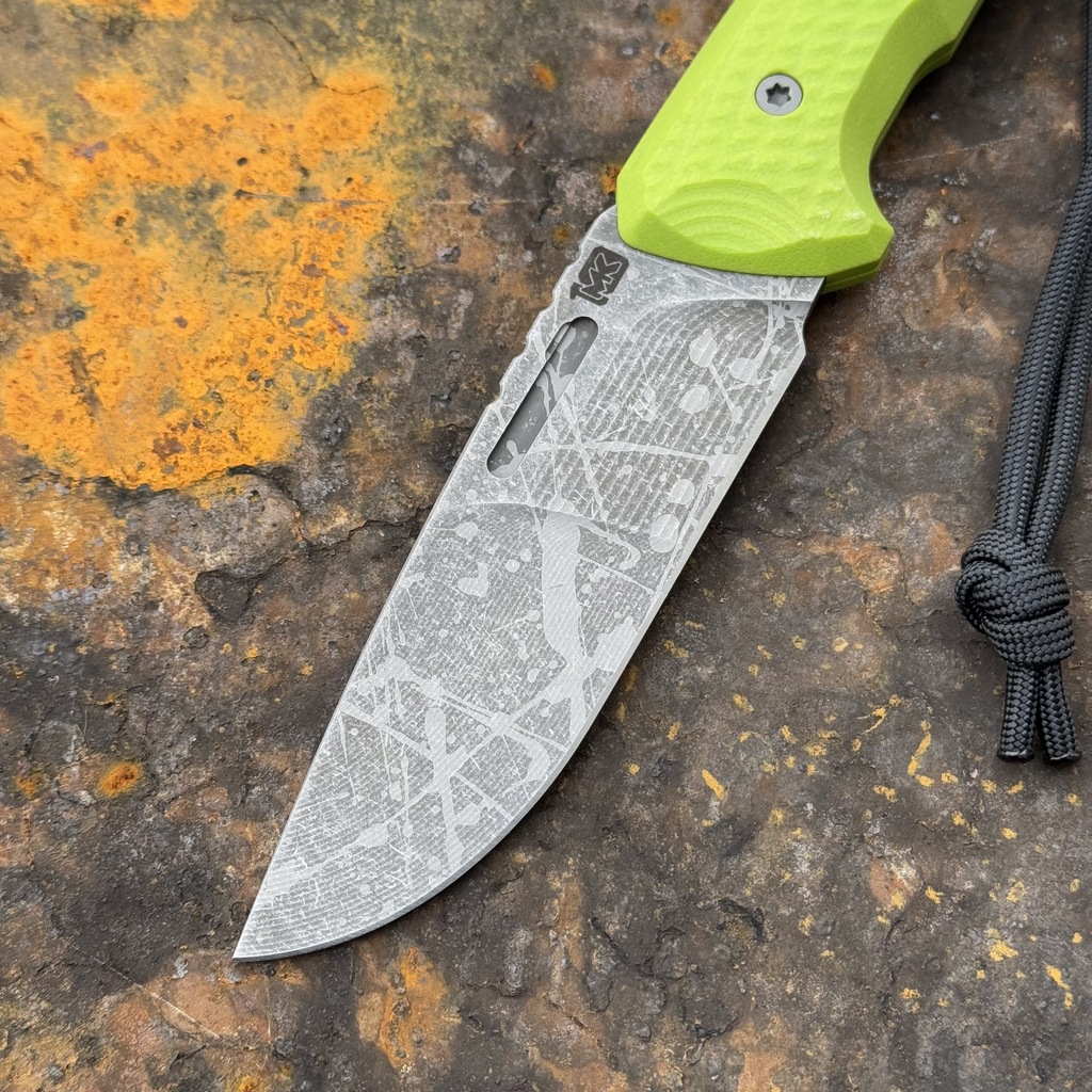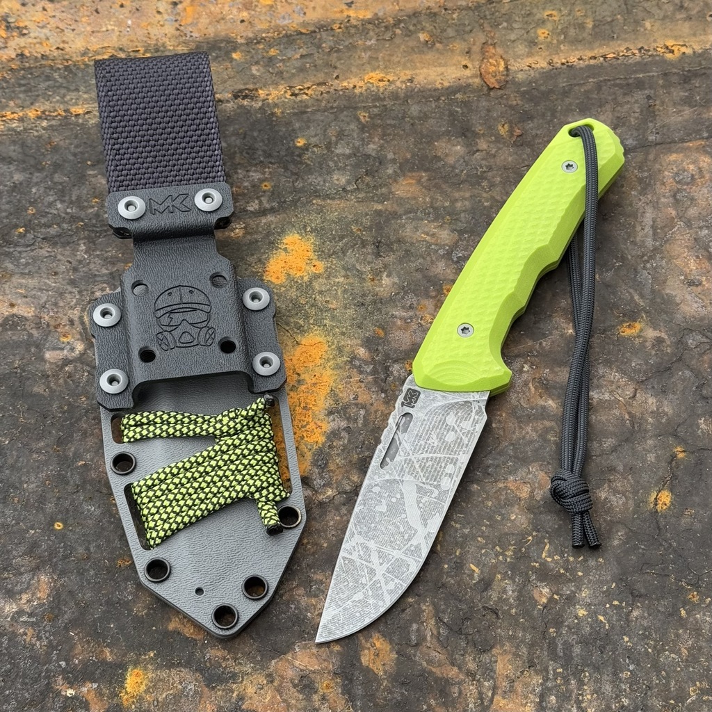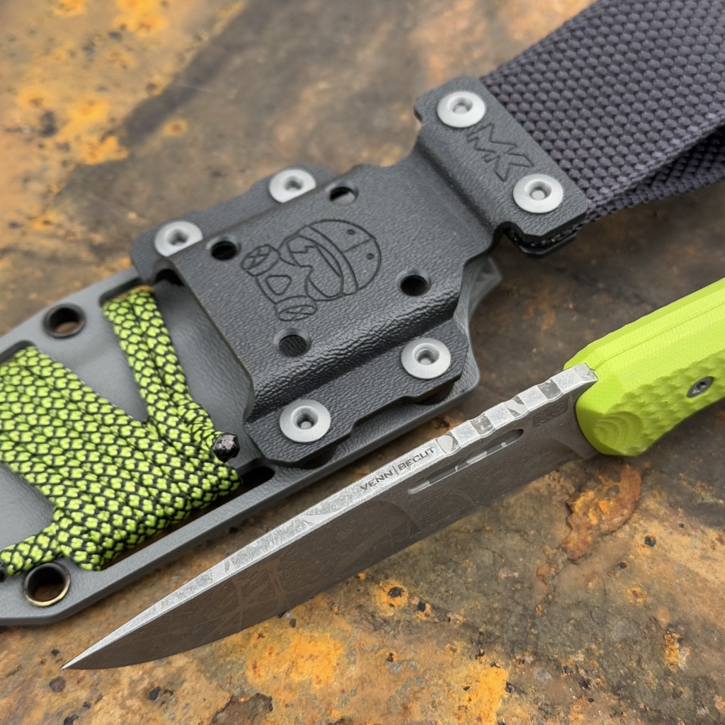 Nóż MK Knives & Tools Venn 'Postapo Zombie Blood’ 10th Anniversary Logo Acid Stonewash Becut Toxic Green G10 Grey Kydex