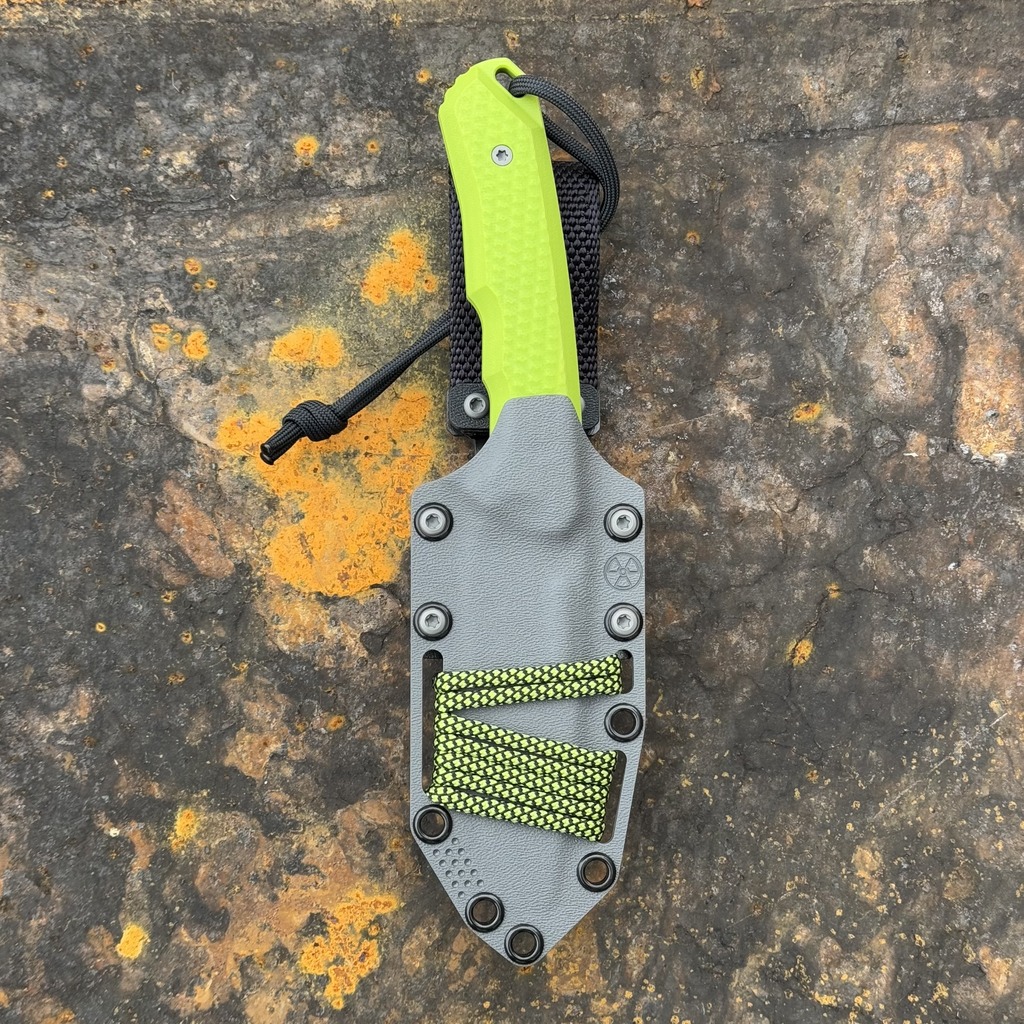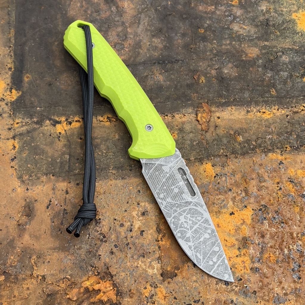 - Rękojeść: Jaskrawozielony laminat G10 (Toxic Green G10)
