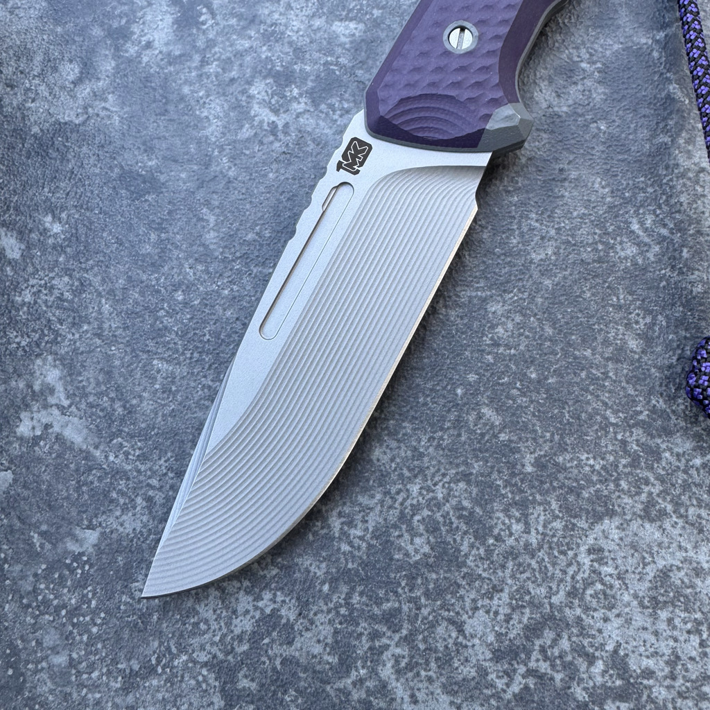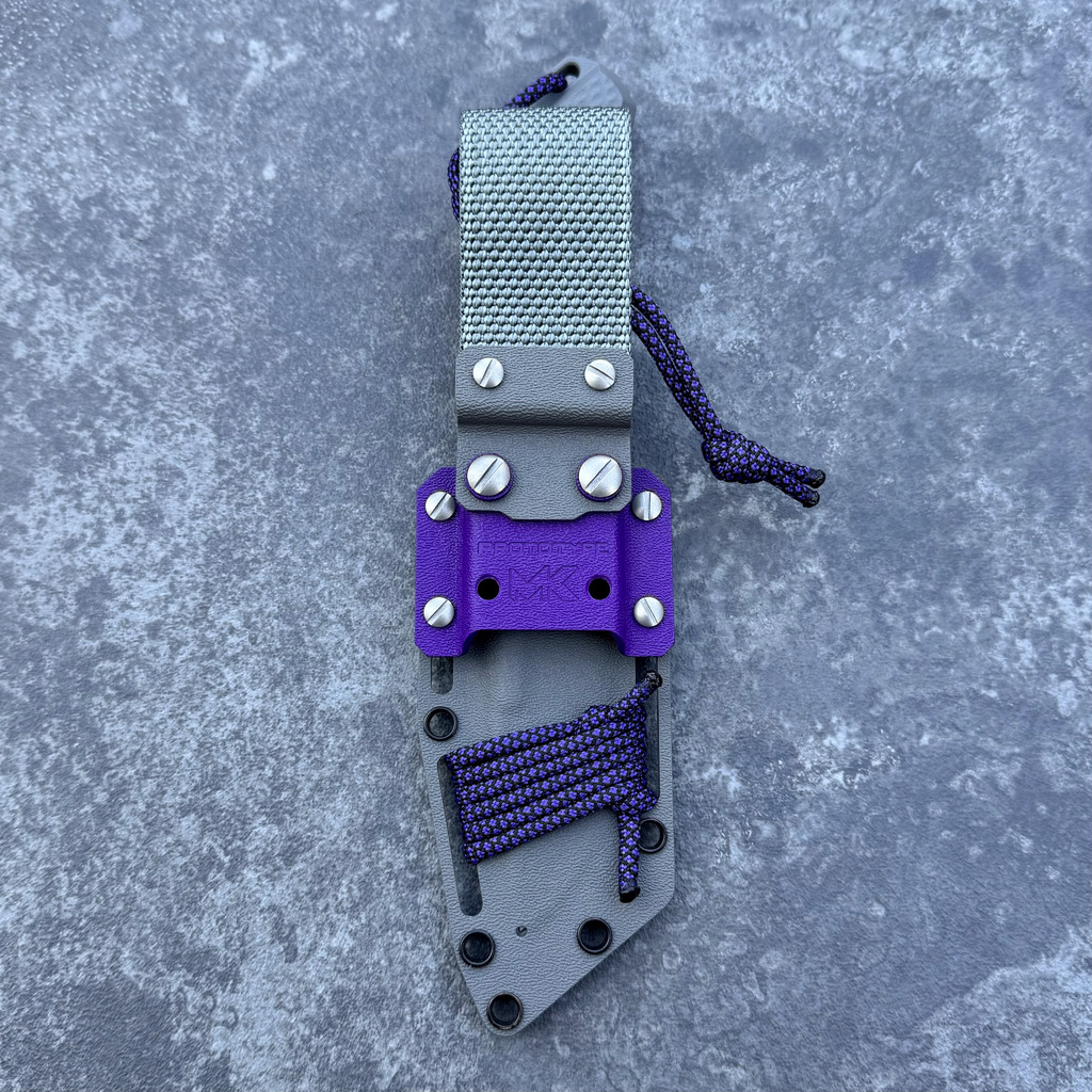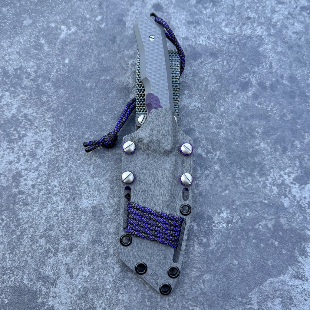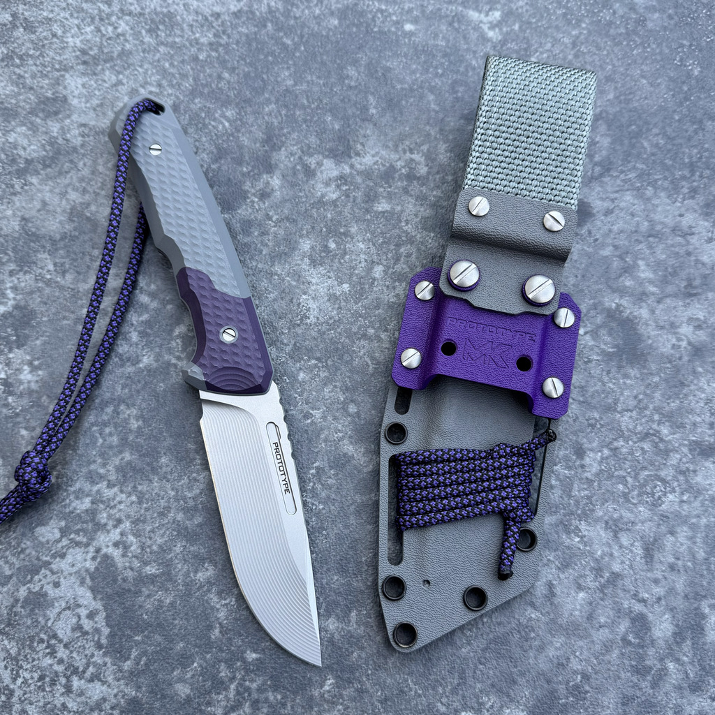 Nóż MK Knives & Tools Venn PROTOTYPE 10th Anniversary Logo Glass Blasted Elmax Charcoal Grey/Royal Purple G10 Grey Kydex