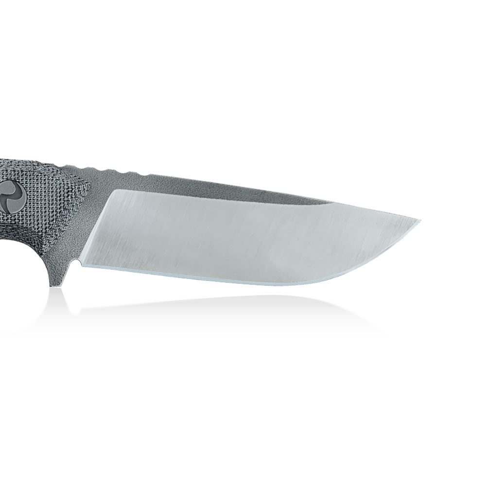 Ostrze o grzbiecie grubości 4 mm wykonane w stylu drop point, posiadające szlif płaski, zapewnia płynne cięcie i wykonywanie różnorodnych zadań (przekłuwanie, struganie, przygotowywanie posiłków itd.). Nóż posiada jelec, który wraz z podcięciem na palec, stanowi zabezpieczenie przed zsunięciem się dłoni na krawędź tnącą podczas pracy i poprawia pewność chwytu. Na grzbiecie ostrza zauważymy karbowanie (jimping) służące do dociskania głowni do materiału.