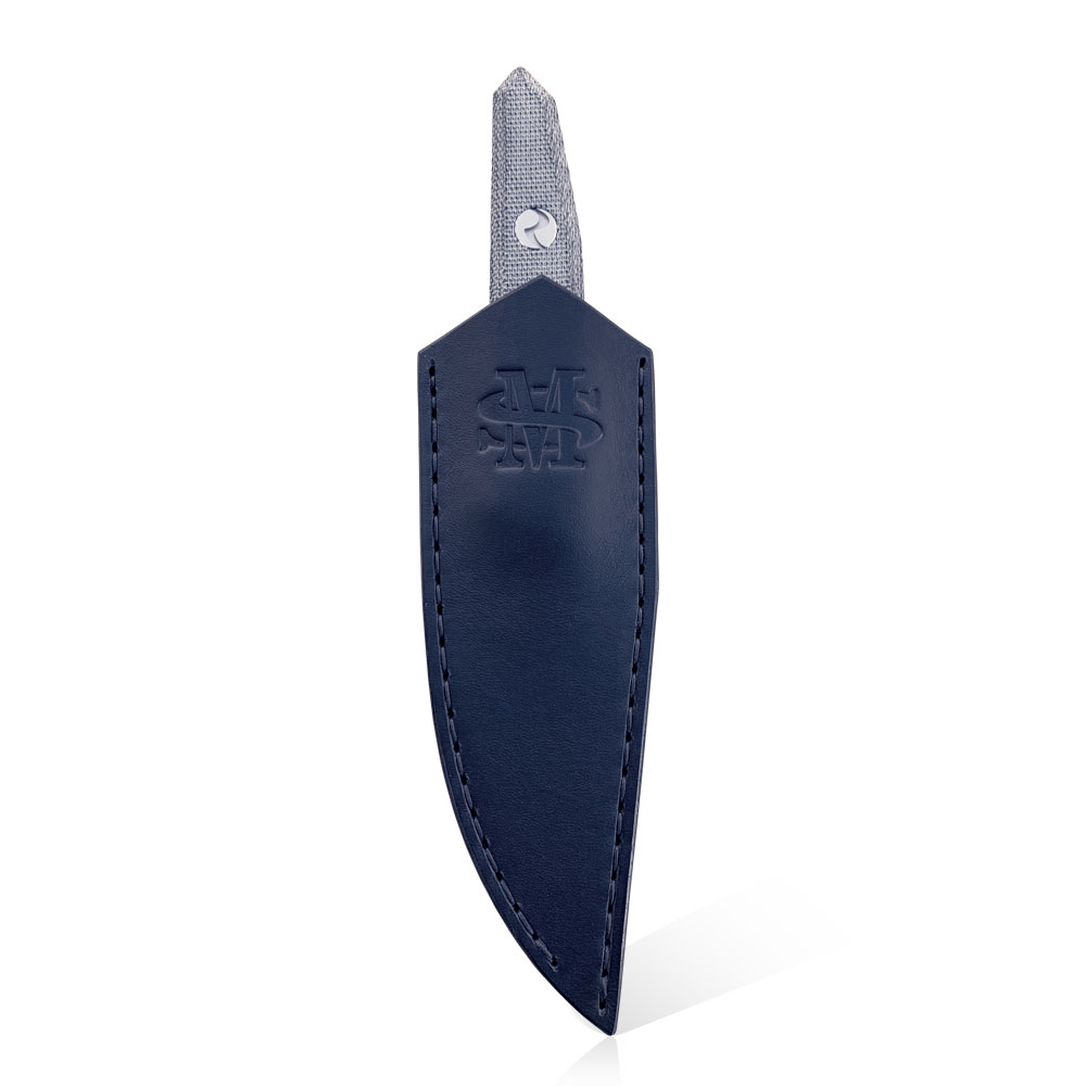 Nóż Liberty wyposażony został w skórzaną pochwę do przechowywania. Pochwa została zrobiona całkowicie ręcznie z wysokiej jakości garbowanej roślinne skóry włoskiej. Przeszycia wykonane zostały grubymi nićmi masywnym ściegiem. Krawędzie ładnie zakończono, obrabiając je na gładko. Skórze nadano kolor czarny a na jej froncie umieszczono logo MS Knives. Pochwa nie posiada uchwytu do paska. W zamyśle wykonawcy, całość jest na tyle subtelnego rozmiaru, że spokojnie zmieści się w ręce, w kieszeni, saszetce itd., co umożliwia łatwy i szybki dostęp do całości.NAZWA: Liberty