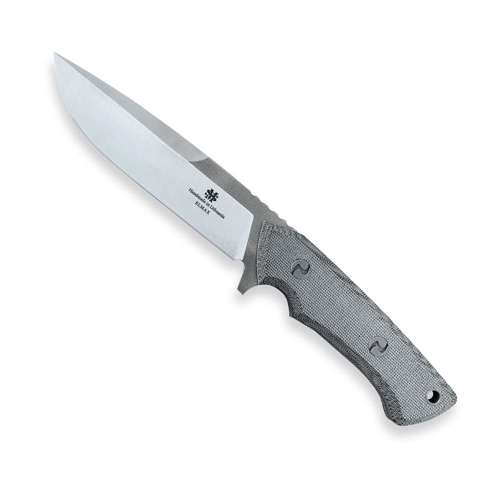 Nóż MS Knives Shark Black Canvas Micarta | Modestas Skirmantas zrobiony został ze stali premium: Elmax, posiada rękojeść z micarty, a do jego przenoszenia służy dopasowana kabura kydex.