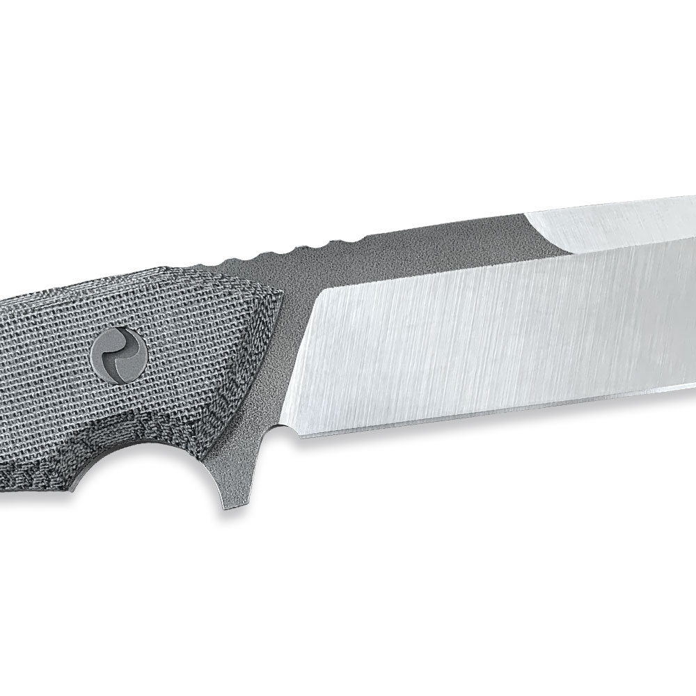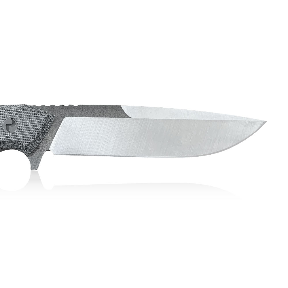 Ostrze o grzbiecie grubości 4 mm wykonane w stylu drop point, posiadające szlif płaski, zapewnia płynne cięcie i wykonywanie różnorodnych zadań (przekłuwanie, struganie, przygotowywanie posiłków itd.). Nóż posiada jelec, który wraz z podcięciem na palec, stanowi zabezpieczenie przed zsunięciem się dłoni na krawędź tnącą podczas pracy i poprawia pewność chwytu. Na grzbiecie ostrza zauważymy karbowanie (jimping) służące do dociskania głowni do materiału.