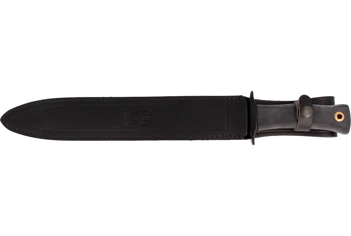 Etui – w kolorze czarnym. Wykonane z naturalnej skóry, zapinane na zatrzask umożliwia bezpieczne przenoszenie noża. Brzegi pochwy przeszyto nicią. Na froncie tłoczone logo producenta. Pochwa posiada mocowanie do pasa lub oporządzenia umożliwiające noszenie noża w pozycji pionowej.
