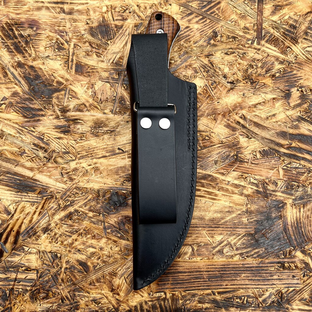 Do przenoszenia i przechowywania noża służy znajdująca się w zestawie z nożem skórzana pochwa wykonaną ręcznie z wysokiej jakości garbowanej roślinnie skóry włoskiej. Pochwa wykonana została w stylistyce „dangler„, z luźnie wiszącą szlufką na pasek. Jest to rozwiązanie nie ograniczające ruchów użytkownika i eliminującej ryzyko uwierania ciała użytkownika podczas pracy na klęczkach, w pochyle itd.