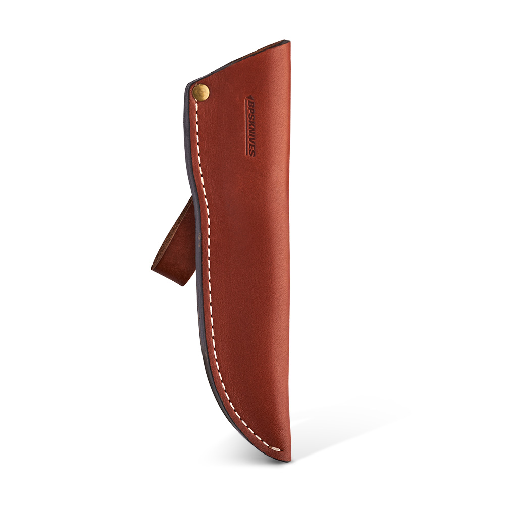 W zestawie z nożem otrzymujemy kaburę wykonaną ze skóry. Jest to klasyczne rozwiązanie pasujące stylem do narzędzia w niej się znajdującego. Drewno i skóra od zawsze stanowią idealne połączenie. Jasne przeszycia na skórze nadają jej bardzo oryginalnego wyglądu. Pochwa noża ma wysoki profil i chowa w sobie część rękojeści by lepiej zabezpieczać nóż przed wypadnięciem. Mocowana jest tradycyjnie do pasa w pozycji pionowej.