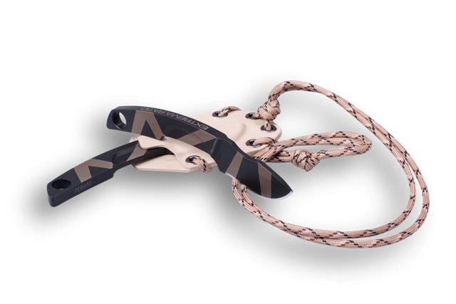 N.K.1 Desert Warfare, pokryty pustynnym kamuflażem nóż neck knife z pochwą przystosowaną do zawieszania na szyi, kamizelce, innej kaburze lub opcjonalnie na pasie. Wyśmienity nóż o imponującej skuteczności zadawanych cięć, idealny do obrony i ataku. Przydatny do drobnych precyzyjnych prac.