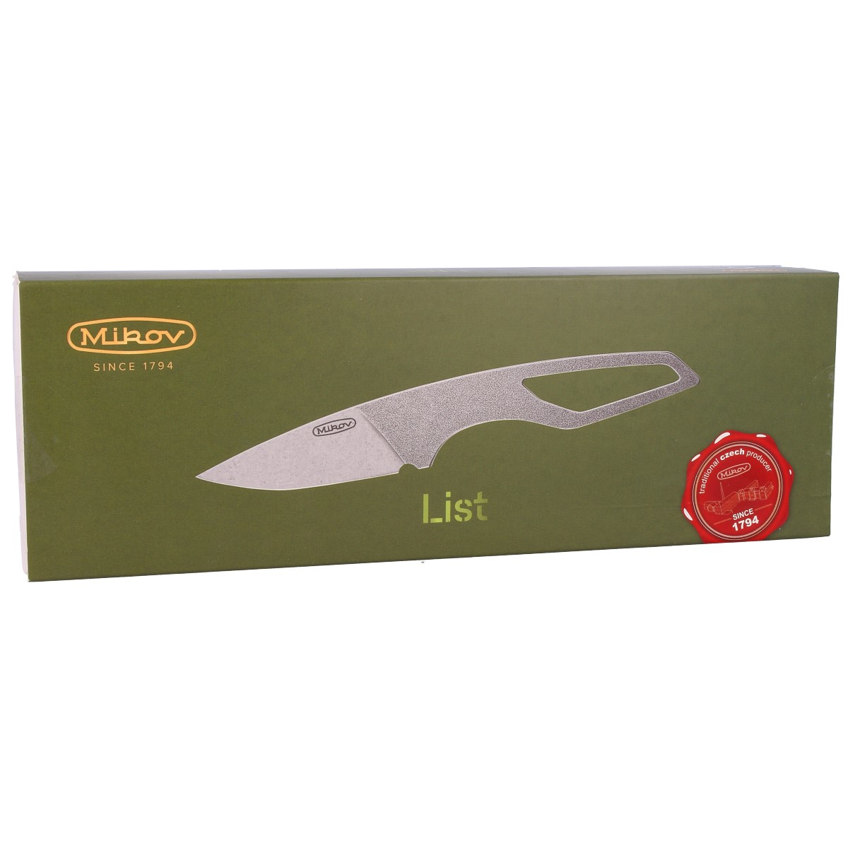 Nóż na szyję Mikov LIST Neck Knife Naked Stainless, N690 Stonewashed (725-B-18) zachwycające w swej prostocie dzieło designerów z Czech. Poręczny i łatwy w przenoszeniu ze względu na wymiary, płaską konstrukcję oraz ekstremalnie niską wagę 65 g, kompaktowy nóż ze stałą klingą o konstrukcji full tang. Wykonany ze stali narzędziowej N690. Wyśmienity nóż o imponującej skuteczności cięć, idealny do obrony, przydatny do drobnych precyzyjnych prac. Projekt doceniła Czeska Akademia Designu nominując go do nagrody Czech Grand Design Awards 2015.