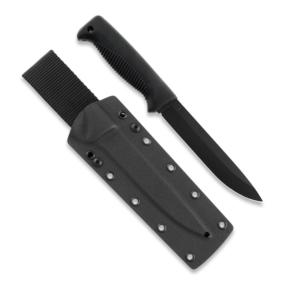 **Prezentowana wersja noża posiada ostrze w czarnej powłoce teflonowej, czarną rękojeść i czarną pochwę z tworzywa Kydex.