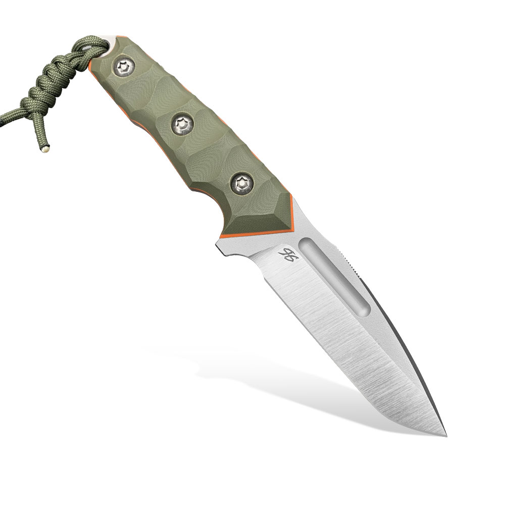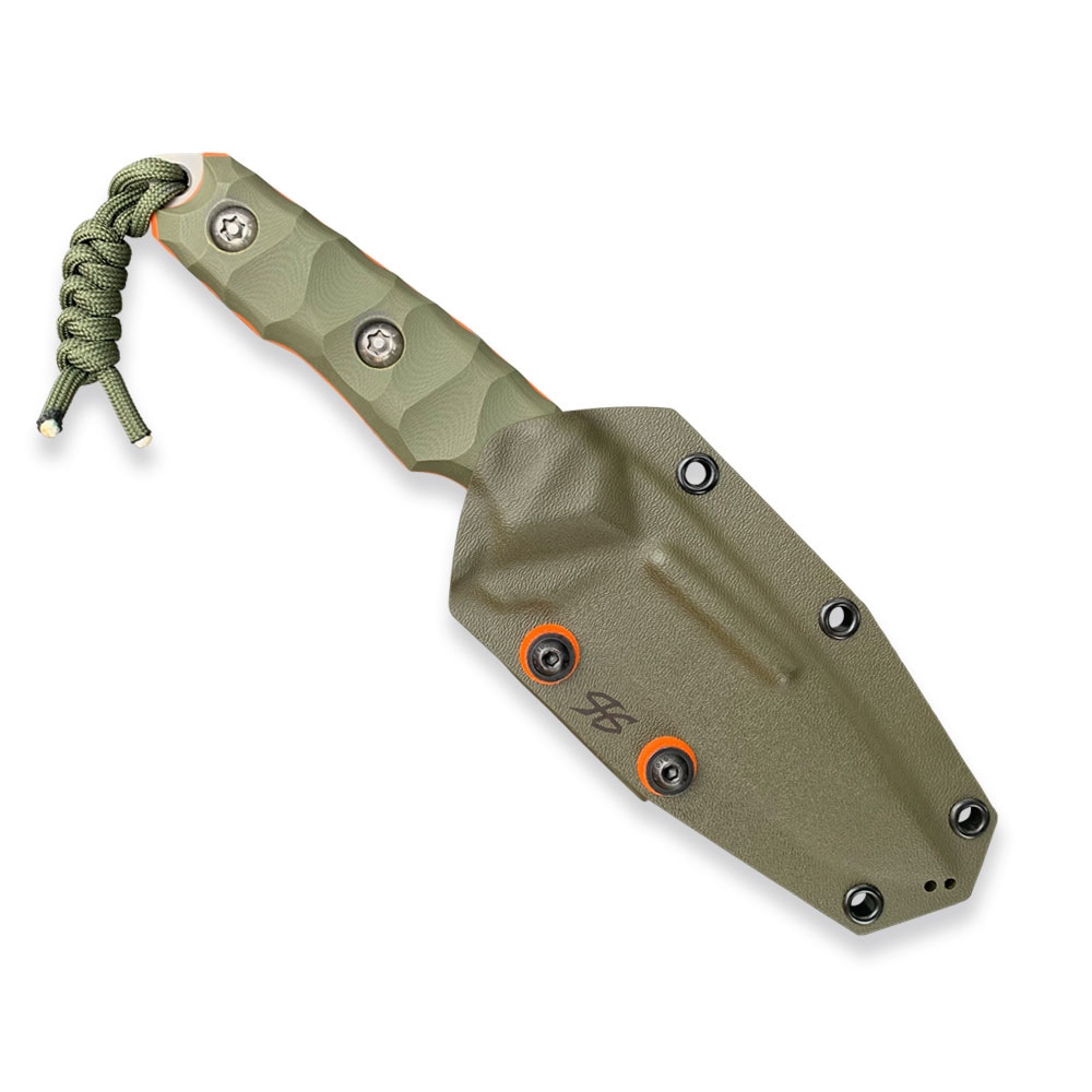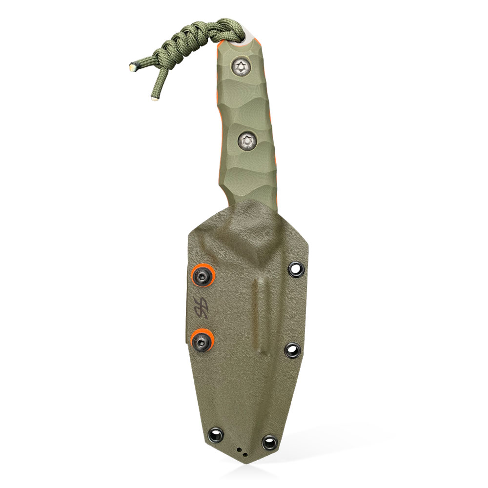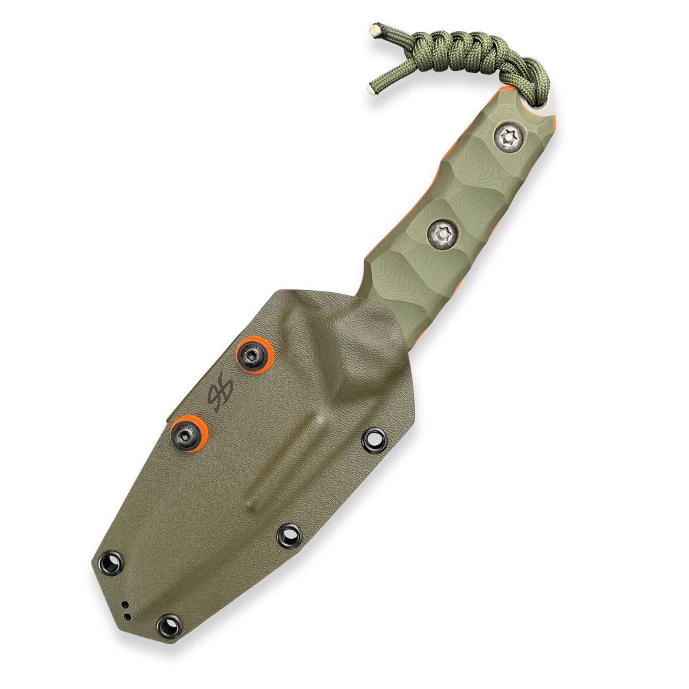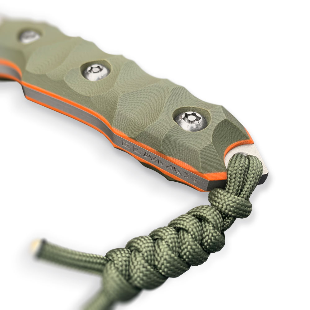 RĘKOJEŚĆ: Zielona | G10 + pomarańczowe przekładkiDŁUGOŚĆ CAŁKOWITA: 240 mm | 9.45″