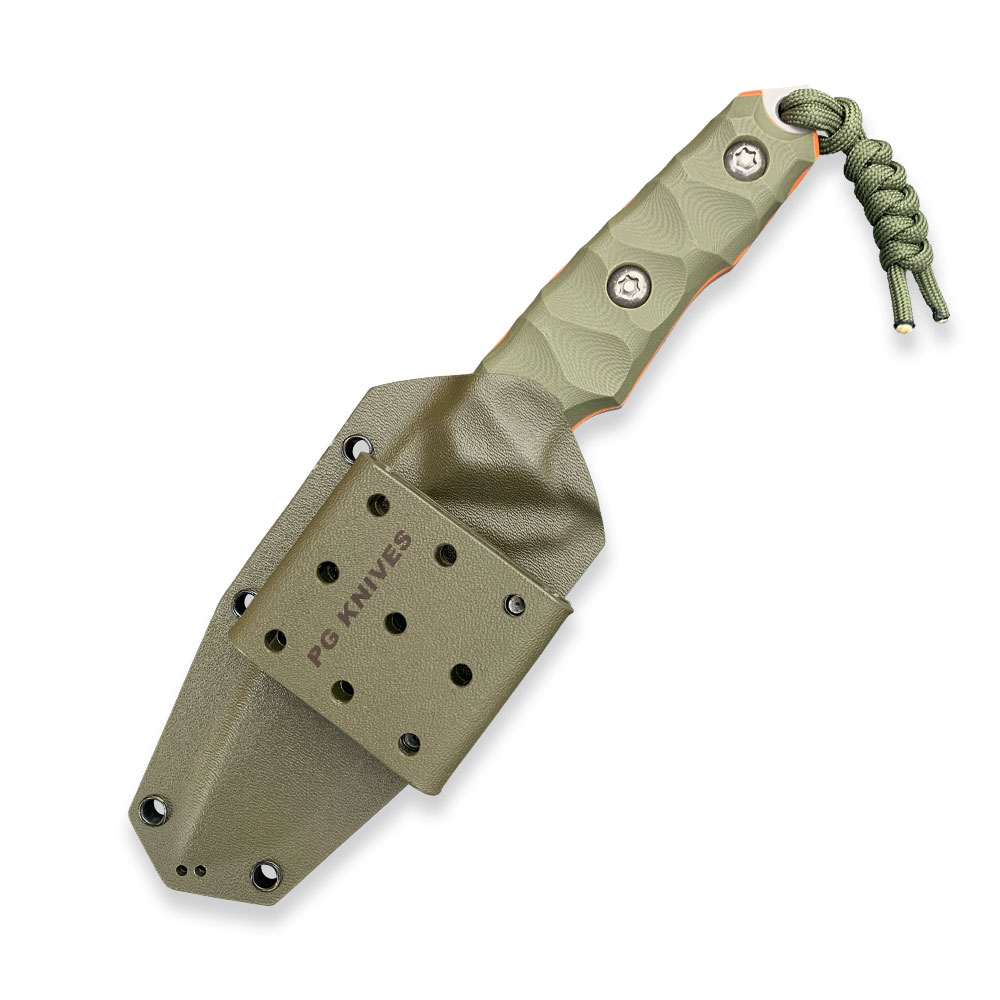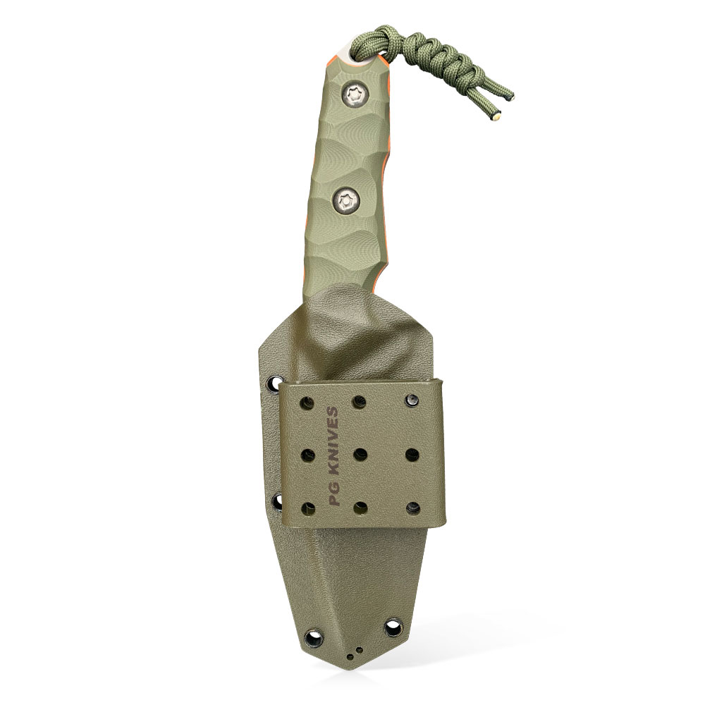 Noże PG Knives przyciągają i cieszą oko. Wyróżniają się designem i skomplikowanymi szlifami na ostrzach, w których knifemaker szczególnie się lubuje i które z pieczołowitością dopracowuje. Połączenie kilku elementów, na które wykonawca kładzie szczególny nacisk tj. bardzo dokładne wykonanie, nowoczesne materiały oraz często futurystyczne kształty, dają konkretną wartość dla przyszłego użytkownika. Co należy podkreślić noże PG Knives niezależnie od złożoności konstrukcji poszczególnych modeli projektowane są z myślą o intensywnym użytkowaniu. W warsztacie większość prac jest wykonywana ręcznie lub przy użyciu maszyn obsługiwanych manualnie. Cały proces związany z obróbką stali począwszy od wycięcia początkowego kształtu, po przez hartowanie i szlifowanie knifemaker realizuje samodzielnie. Podobnie jest też z obrabianiem materiałów na rękojeści (G10, micarta) i pochewki (kydex).