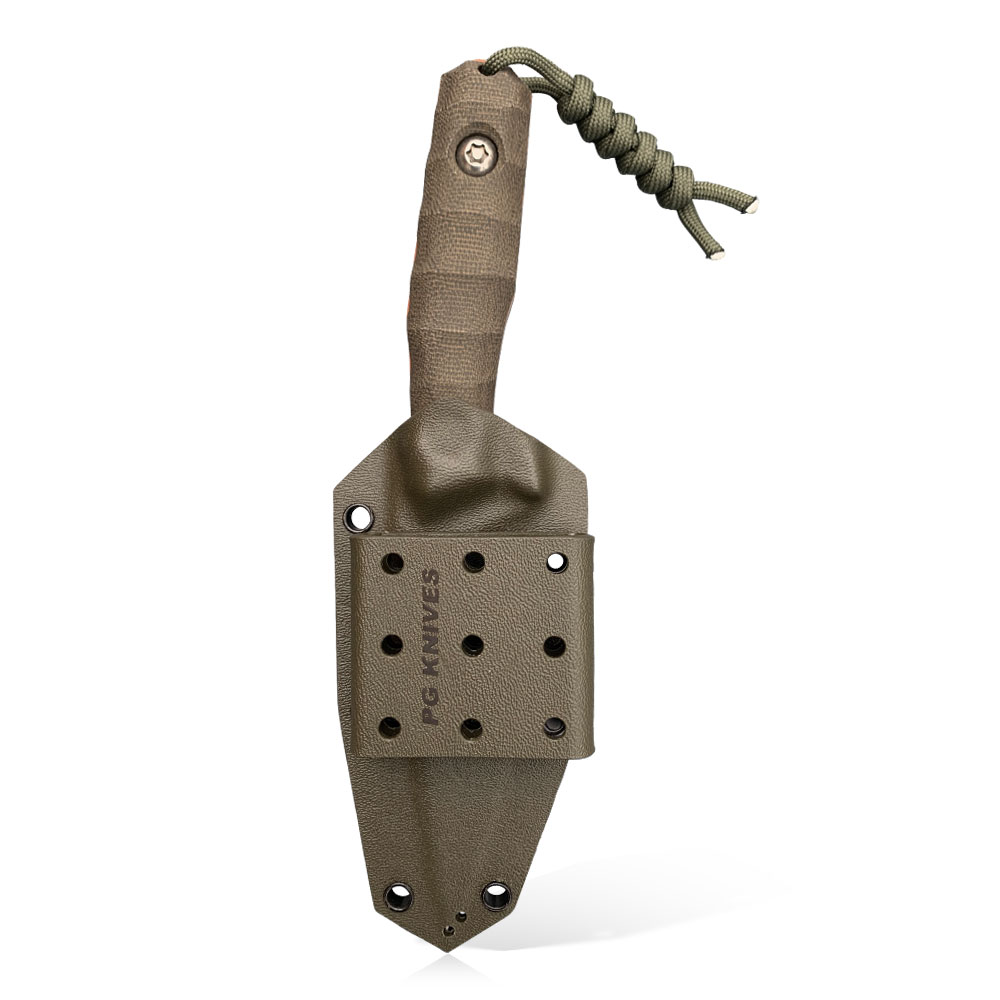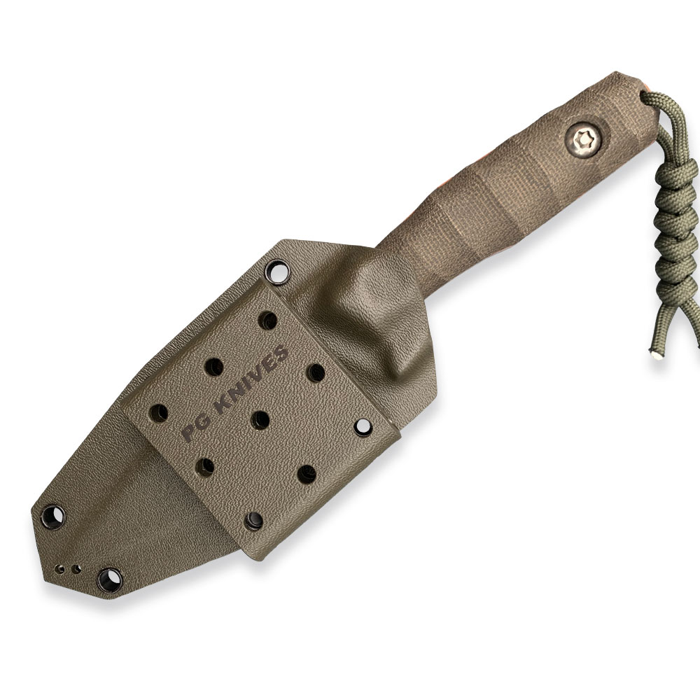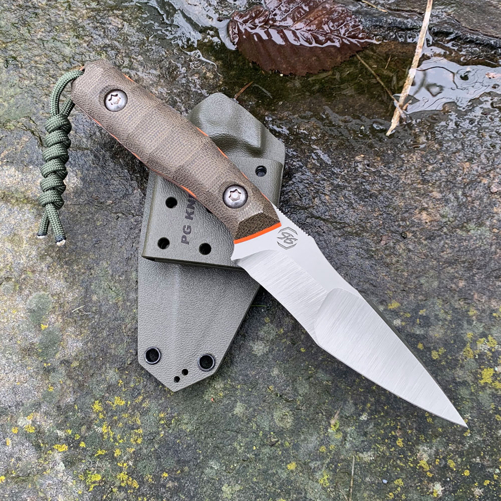 Noże PG Knives przyciągają i cieszą oko. Wyróżniają się designem i skomplikowanymi szlifami na ostrzach, w których knifemaker szczególnie się lubuje i które z pieczołowitością dopracowuje. Połączenie kilku elementów, na które wykonawca kładzie szczególny nacisk tj. bardzo dokładne wykonanie, nowoczesne materiały oraz często futurystyczne kształty, dają konkretną wartość dla przyszłego użytkownika. Co należy podkreślić noże PG Knives niezależnie od złożoności konstrukcji poszczególnych modeli projektowane są z myślą o intensywnym użytkowaniu. W warsztacie większość prac jest wykonywana ręcznie lub przy użyciu maszyn obsługiwanych manualnie. Cały proces związany z obróbką stali począwszy od wycięcia początkowego kształtu, po przez hartowanie i szlifowanie knifemaker realizuje samodzielnie. Podobnie jest też z obrabianiem materiałów na rękojeści (G10, micarta) i pochewki (kydex).