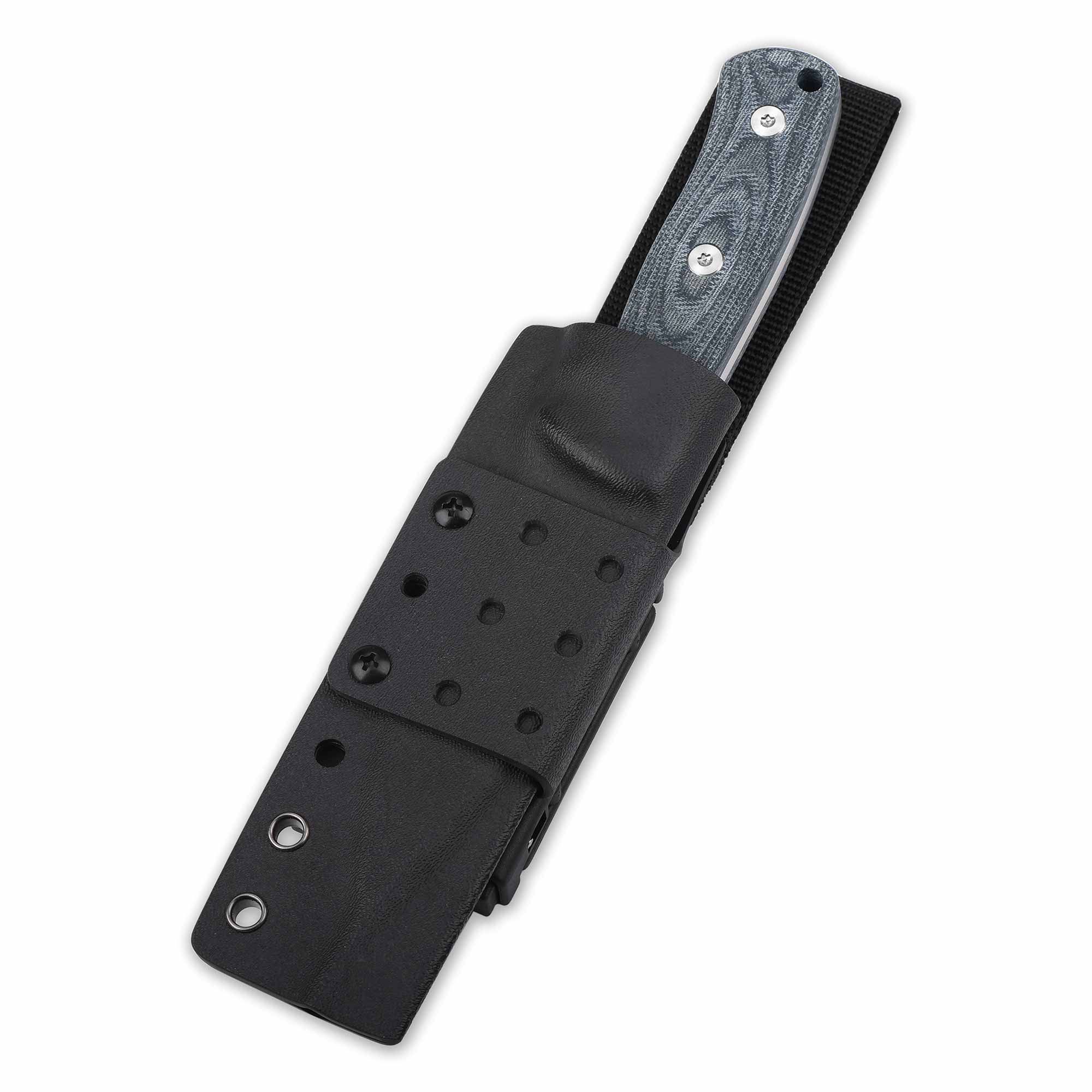 Nóż Bison wyposażony został w kaburę z kydexu, której dodatkowym atutem jest możliwość montażu zarówno w pionie jak i w poziomie, w zależności od preferencji użytkownika.
