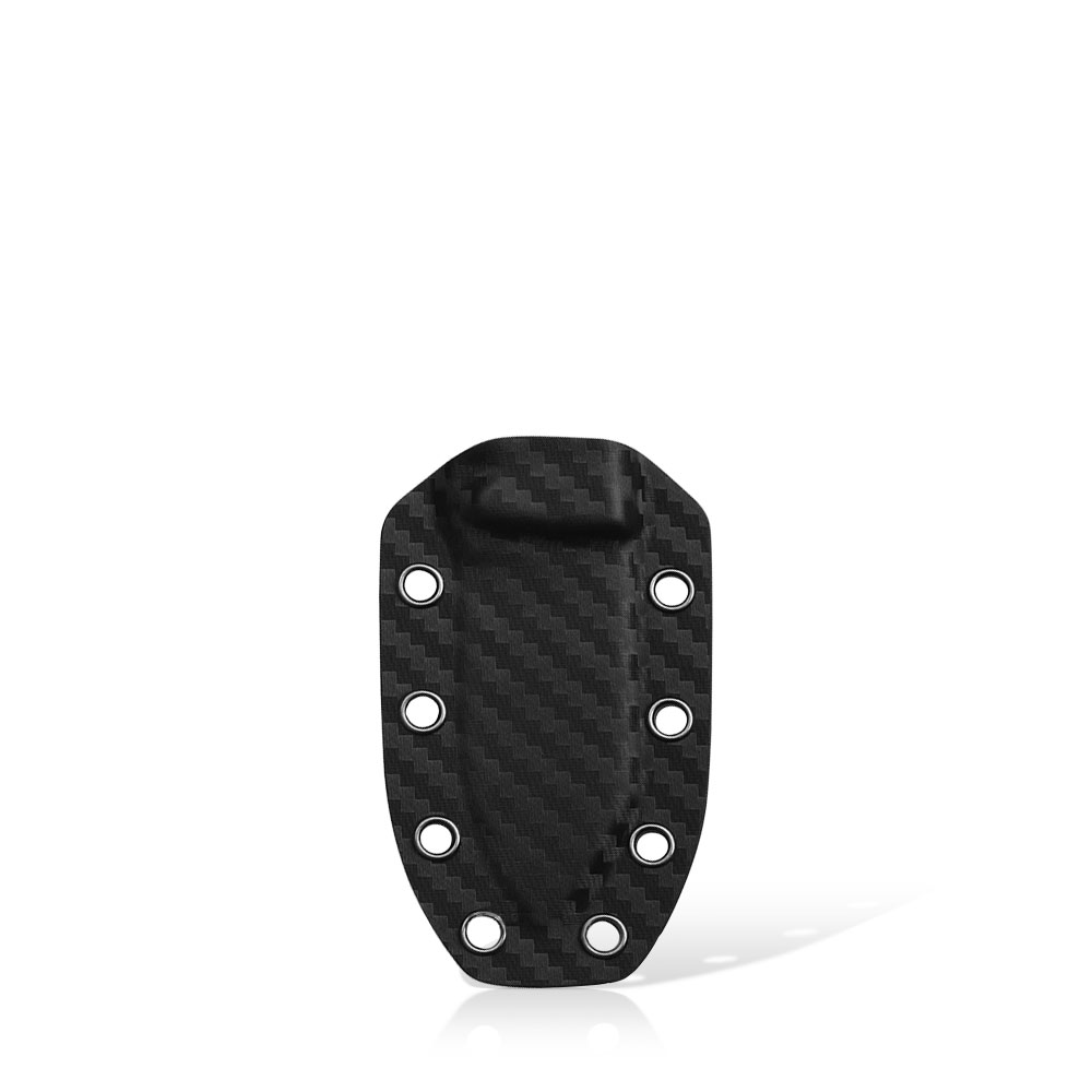W zestawie z nożem otrzymujemy kaburę wykonaną z kydex’u z łańcuszkiem. Kydex cechuje się wysoką odpornością na uderzenia, zarysowania, charakteryzuje się niską chłonnością wilgoci, odpornością na różnorodne warunki atmosferyczne oraz wiele środków chemicznych. Kabury z niego wykonane użytkujemy wygodnie i długotrwale. Podstawowa forma przenoszenia noża to neck knife czyli nóż do noszenia na szyi ale kabura zaopatrzona została w piny przelotowe by użyć ich do jej zamocowania na plecaku.