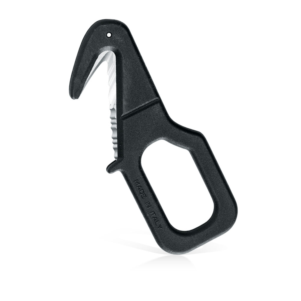 Krawędź tnąca uformowana została w formie literki V z mniejszym i większym skrzydłem. Na dłuższym z nich, na całej długości krawędź jest ząbkowana. Ząbkowana krawędź tnąca ułatwia i przyspiesza cięcie linek, nici, sieci itd.