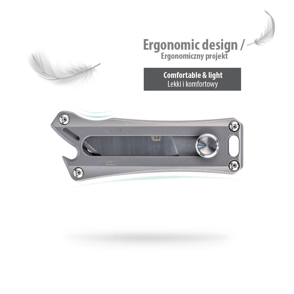 Nóż RovyVon Valor V20 Titanium Utility Pocket Knife | Nóż z Wysuwanym Ostrzem to poręczne narzędzie codziennego użytku zaopatrzone dodatkowo w otwieracz do butelek.