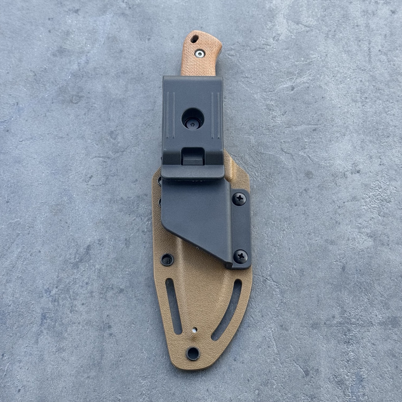 - Pokrowiec: Jasnobrązowa kabura Kydex (coyote), czarny uchwyt