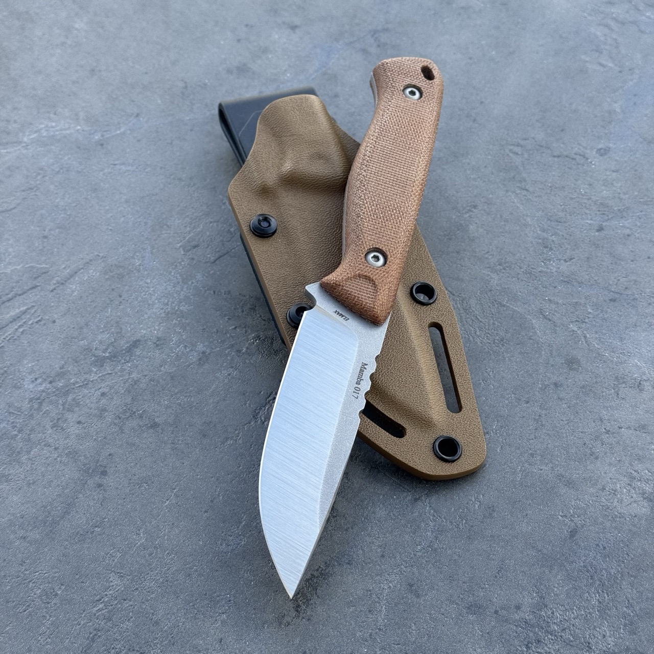 Nóż SJ-Knife Mamba 'Melar’ Satin Elmax Natural Canvas Micarta Black Kydex