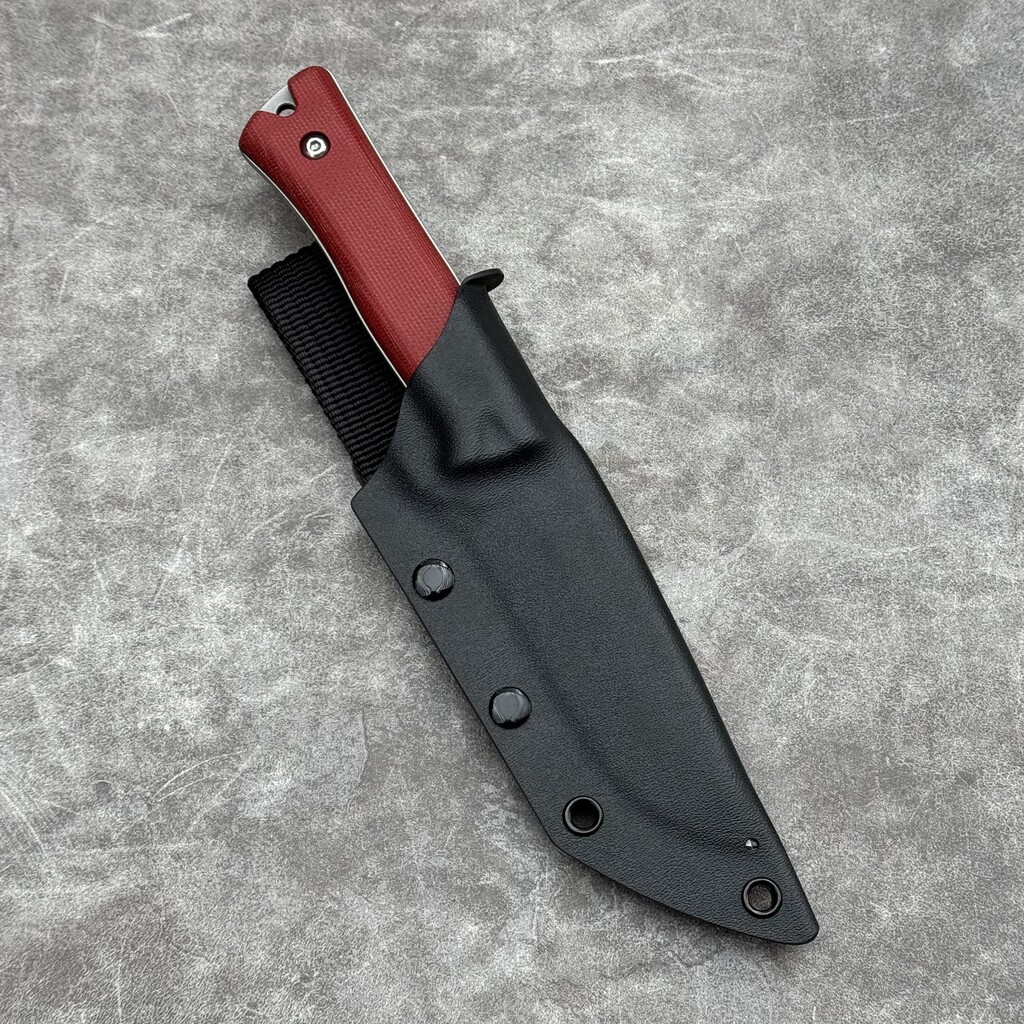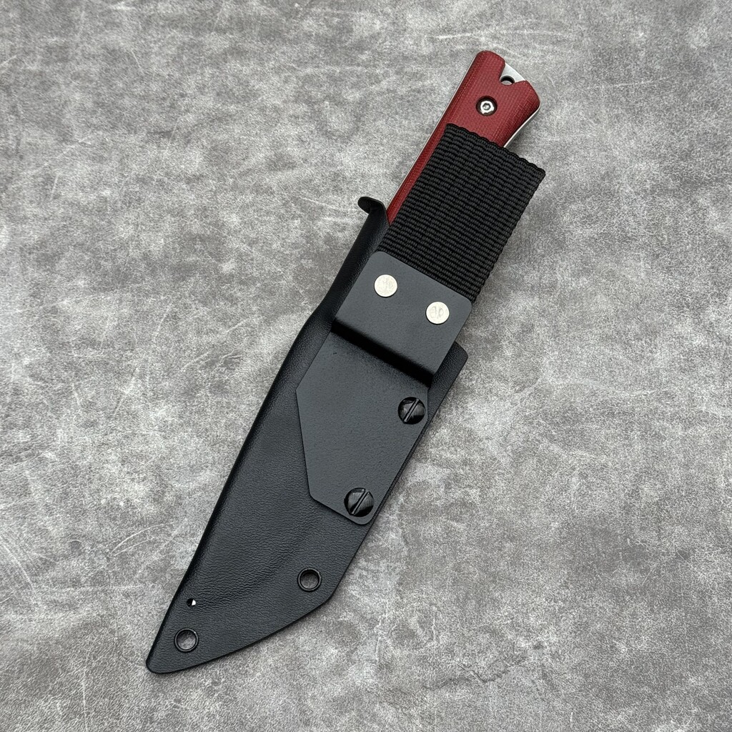 - Rękojeść: Czerwona Micarta / Red Micarta + czarne przekładki / black G10 liners