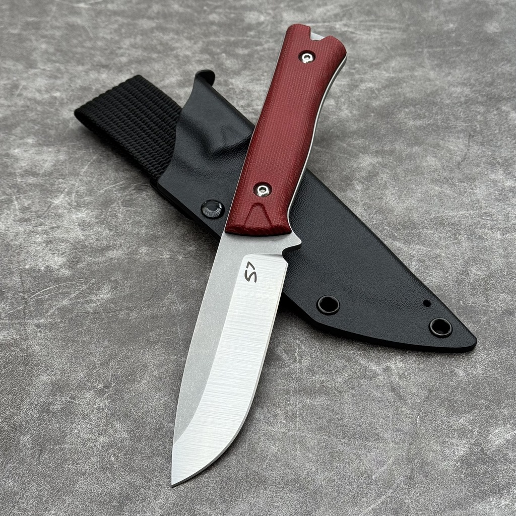 Nóż SJ-Knife Templar 'Carmine’ Satin Elmax Red Micarta / Black G10 Black Kydex