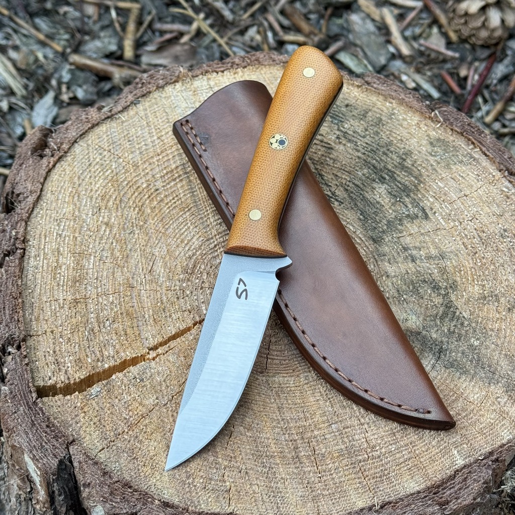 Nóż SJ-Knife Wilczy Pazur 'Mozaika’ Satyna Elmax Naturalna Micarta/Czarny Laminat G10 Brązowa Skórzana Pochwa