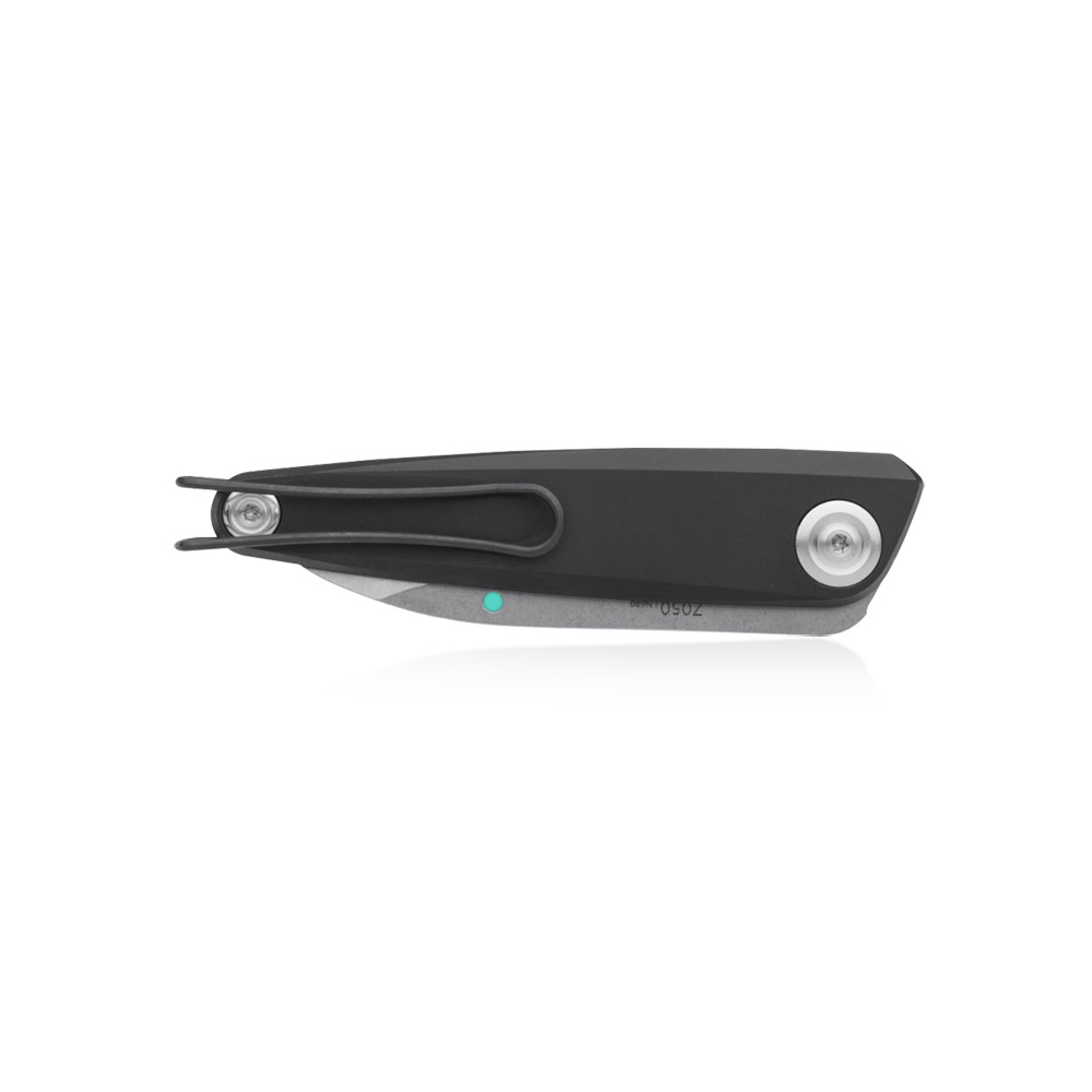 Nóż został wyposażony w dyskretny klips mocujący z odpowiednio wyprofilowanego stalowego drutu. Jest to bardzo ciekawe rozwiązanie, spójne z designem i koncepcją lekkiego noża składanego a w dodatku powodujące że nóż nie rzuca się mocno w oczy kiedy zamocowany jest o skrawek materiału w naszej kieszeni. Klips można mocować po obydwu stronach noża.