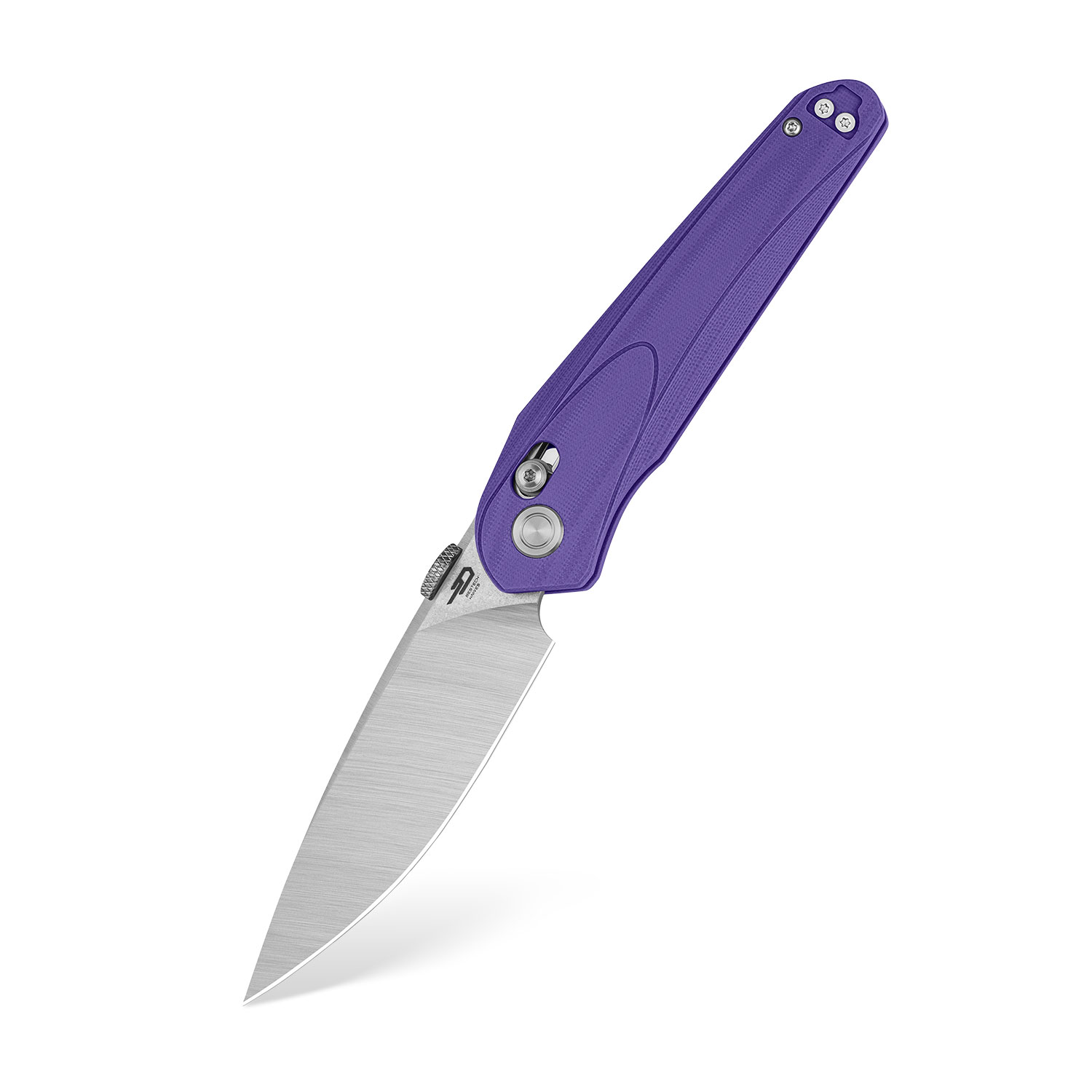 Nóż Składany Bestech Mothus BG67C Satin+Stonewashed 14C28N Purple G10 Crossbar Lock Thumb Disc