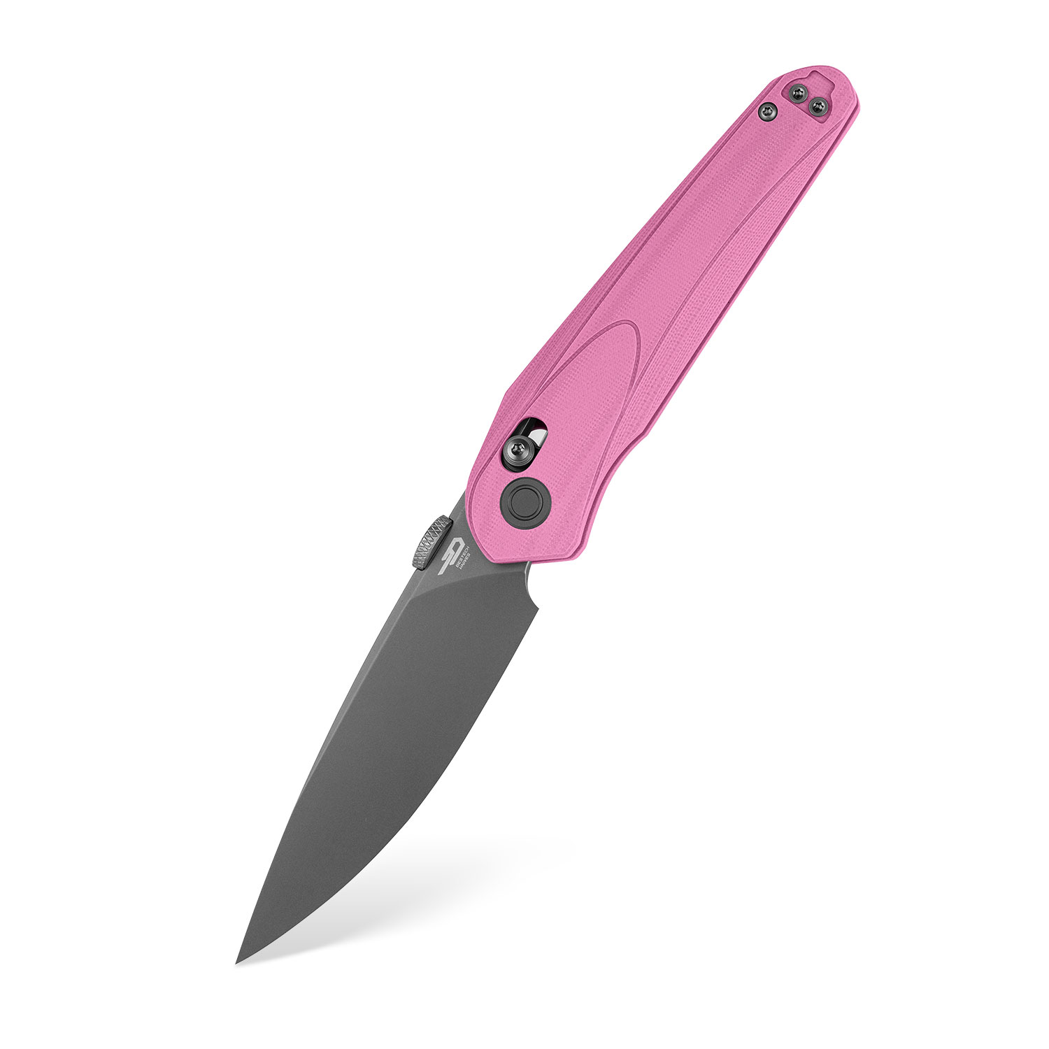 Nóż Składany Bestech Mothus BG67E Grey PVD 14C28N Pink G10 Crossbar Lock Thumb Disc
